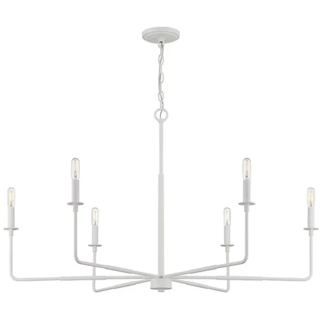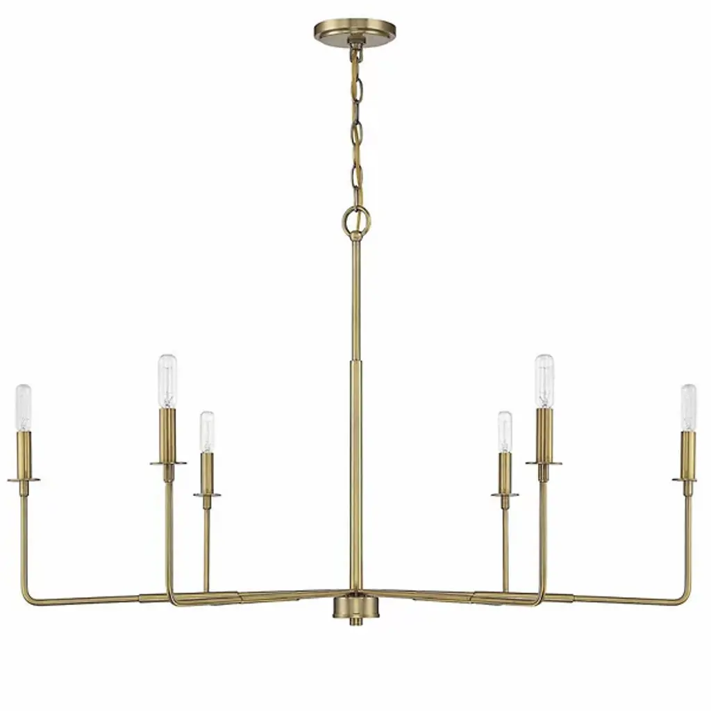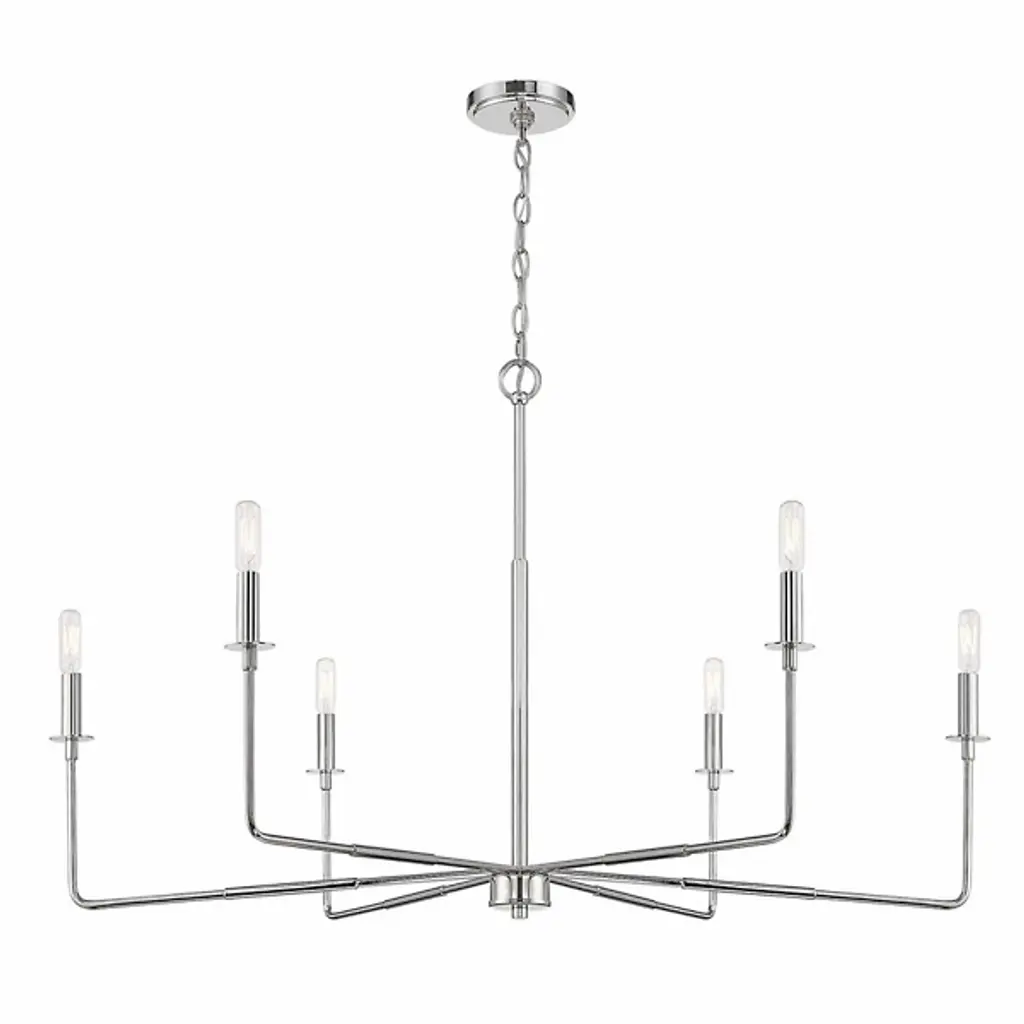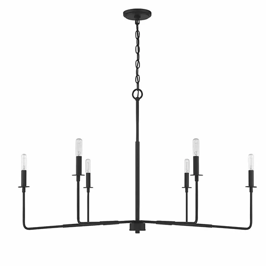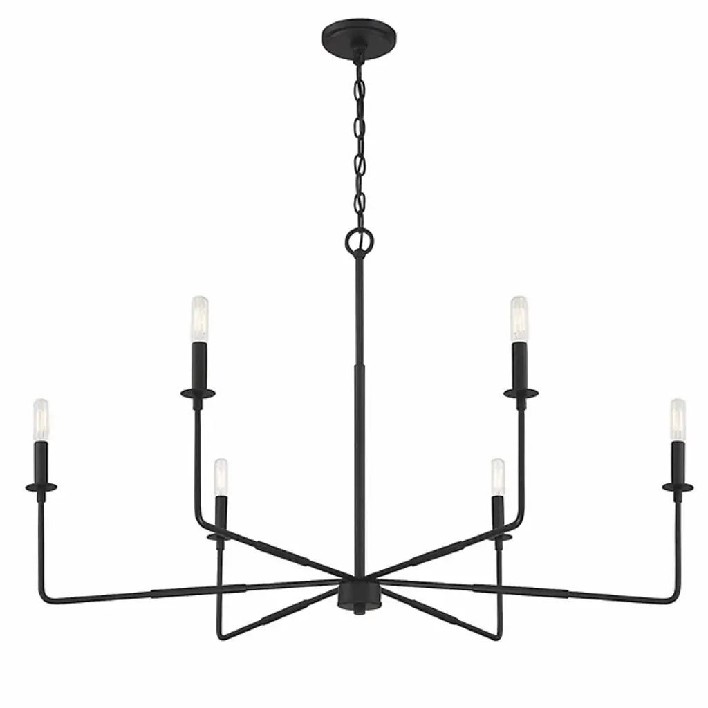 Expand indoor illumination with the wide-reaching and tasteful height of the Salerno Chandelier from Savoy House. A refined, simple design with plenty of reach and a rustic appeal, it descends via chain and stems from a stepped circular canopy, securing a round hub below that steadies several slender arms that arc out and then up. Each arm blooms a candelabra lamp from a small, circular bobeche, playing well with a vintage-style bulb to add an element of contrast to the fixture’s assured elegant simplicity.