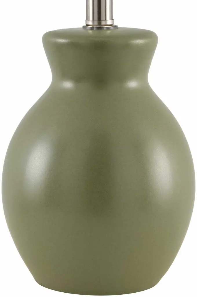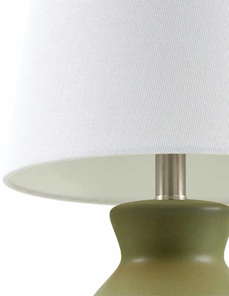 Collection: Salgareda Colors: Green, White, Translucent Material: Body: Ceramic / Shade (Outside): Cotton / Shade (Inside): Polyurethane Styles: Transitional,Traditional Made In: China Lighting Type: Accent Table Lighting Shade Material: Cotton, Polyurethane Shade Color: White, White Cord Length: 6' Switch Type: Rocker Number of Bulbs: 1 Socket Type: E-26 Bulb Wattage: 40W