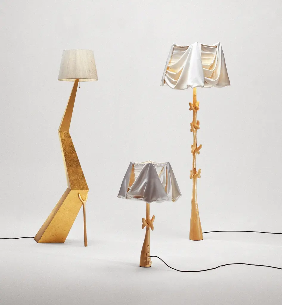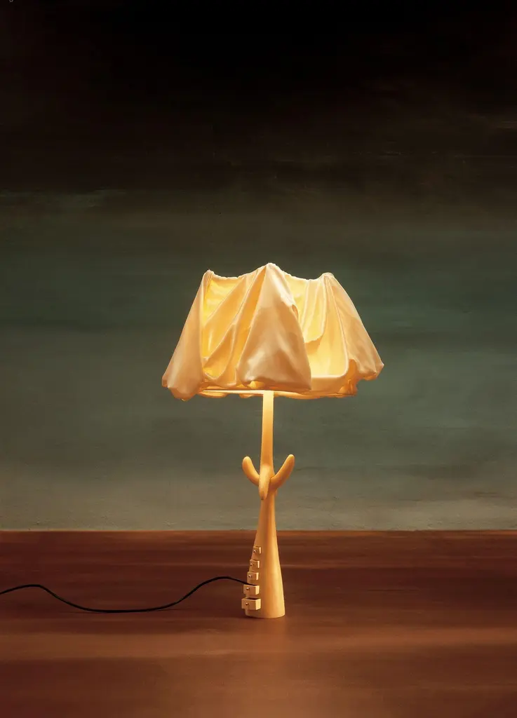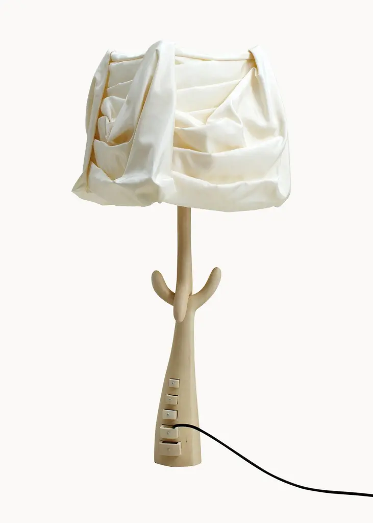 Drawers lamp designed by Dali manufactured by BD.Carved structure in pale varnished limewood.Lampshade in beige linen.Measures: 30 x 30 x 87 H cmSculpture-lamp drawersA standing lamp taken from Dalí’s drawings for Jean Michel Frank. With this, Dalí introduced the little drawers at the base of the lamp, an idea he already used on other occasions for example, “Venus de Milo aux tiroirs” (Venus of Milo with drawers). The idea of connecting the electronic cord through one of the drawers is a contribution made by Architect Oscar Tusquets Blanca.