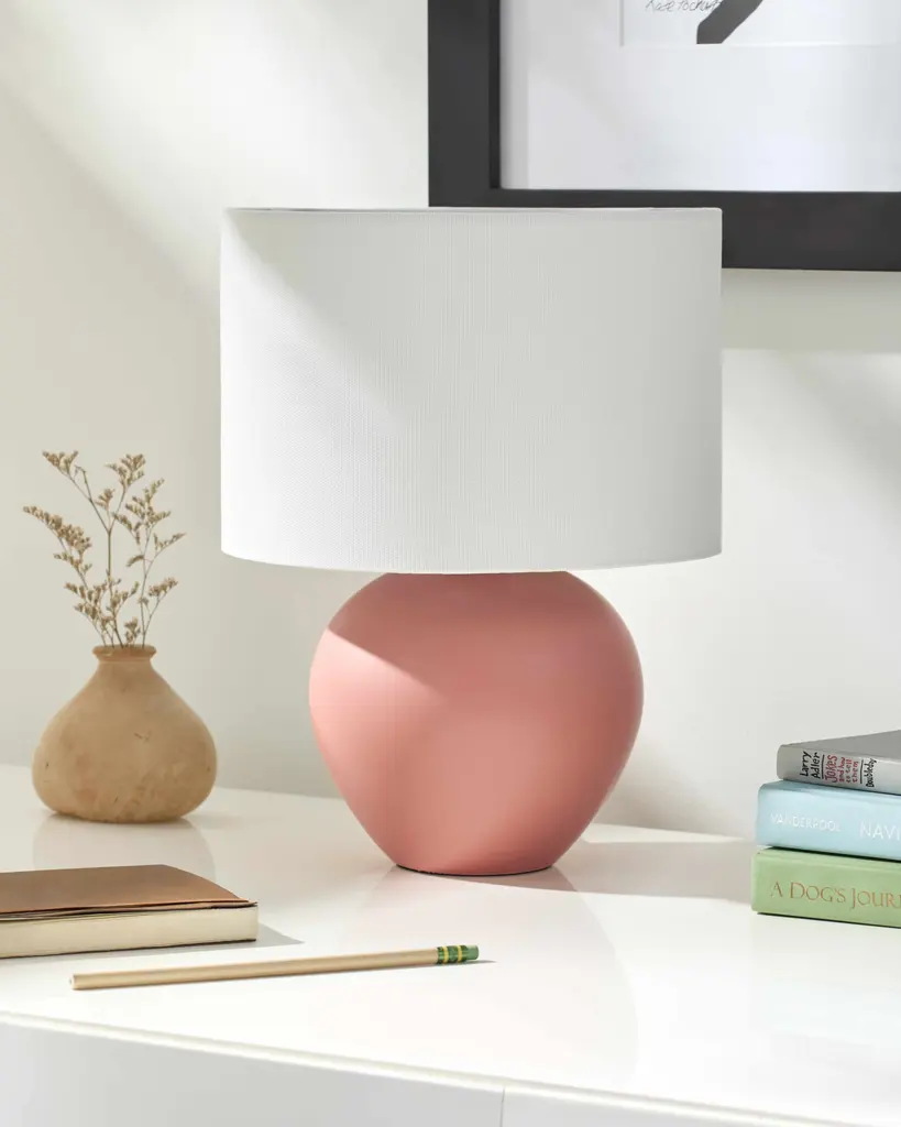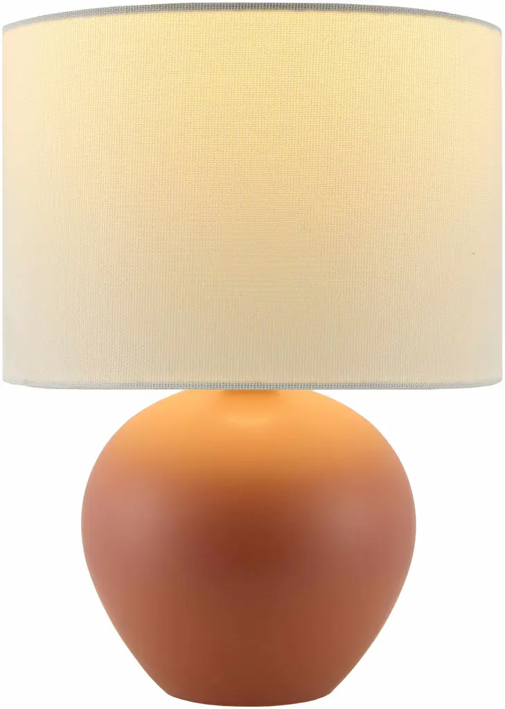 Collection: Salzkotten Colors: Brick Red, White, Translucent Material: Body: Ceramic / Shade (Outside): Linen / Shade (Inside): , Polystyrene Styles: Traditional Made In: China Lighting Type: Accent Table Lighting Shade Material: Linen, Polystyrene Shade Color: White Cord Length: 5' Switch Type: Rocker Number of Bulbs: 1 Socket Type: E-26 Bulb Wattage: 40W