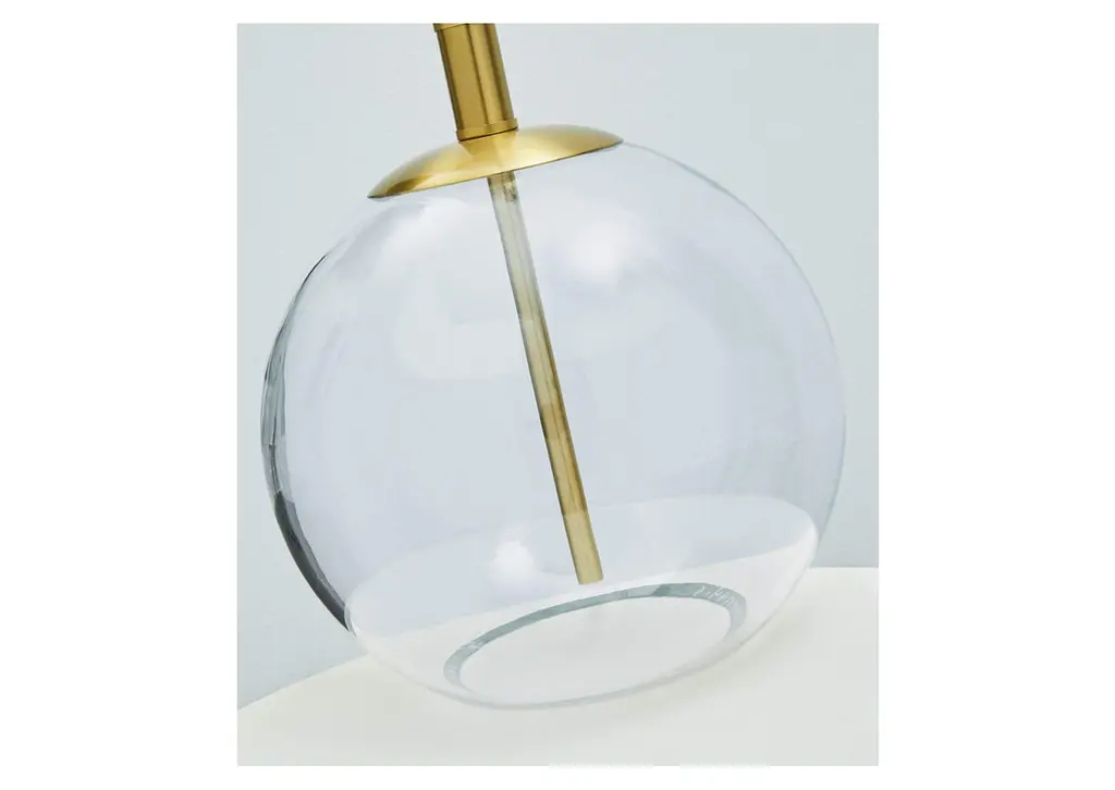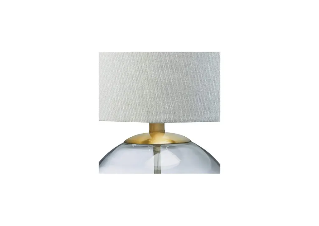 Featuring a round, clear glass base, the Samder table lamp has a clean sculptural appeal that's easy to implement into a variety of decor styles. Its sheer simplicity exudes a clean, fresh aesthetic, adding low-key glamour to your bedroom or living room. Weight 8.000 lbs. (3.6kgs.)