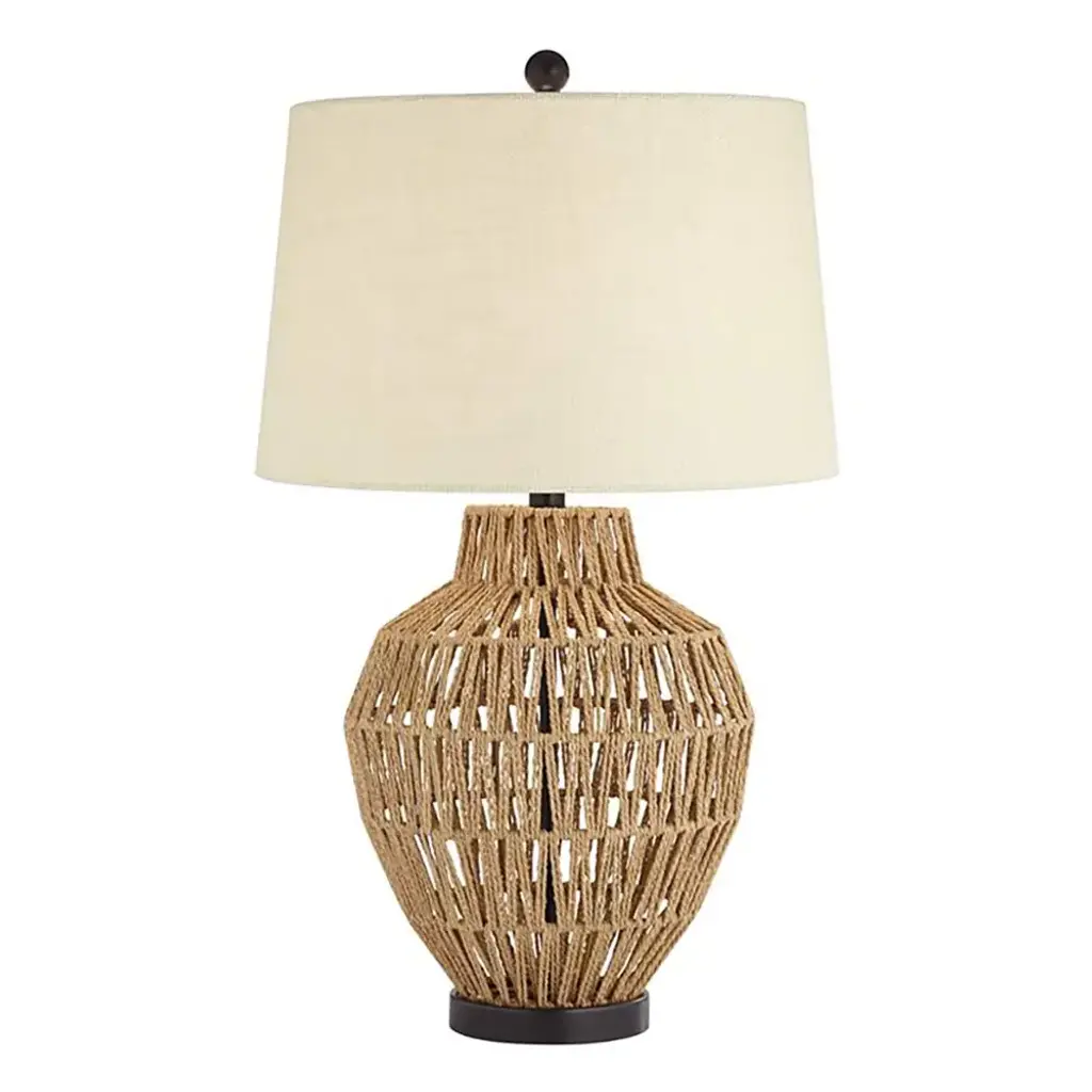 San Marcos 27" Woven Wicker Coastal Modern Table Lamp - 16" X 27" - 16" X 27" - Beige