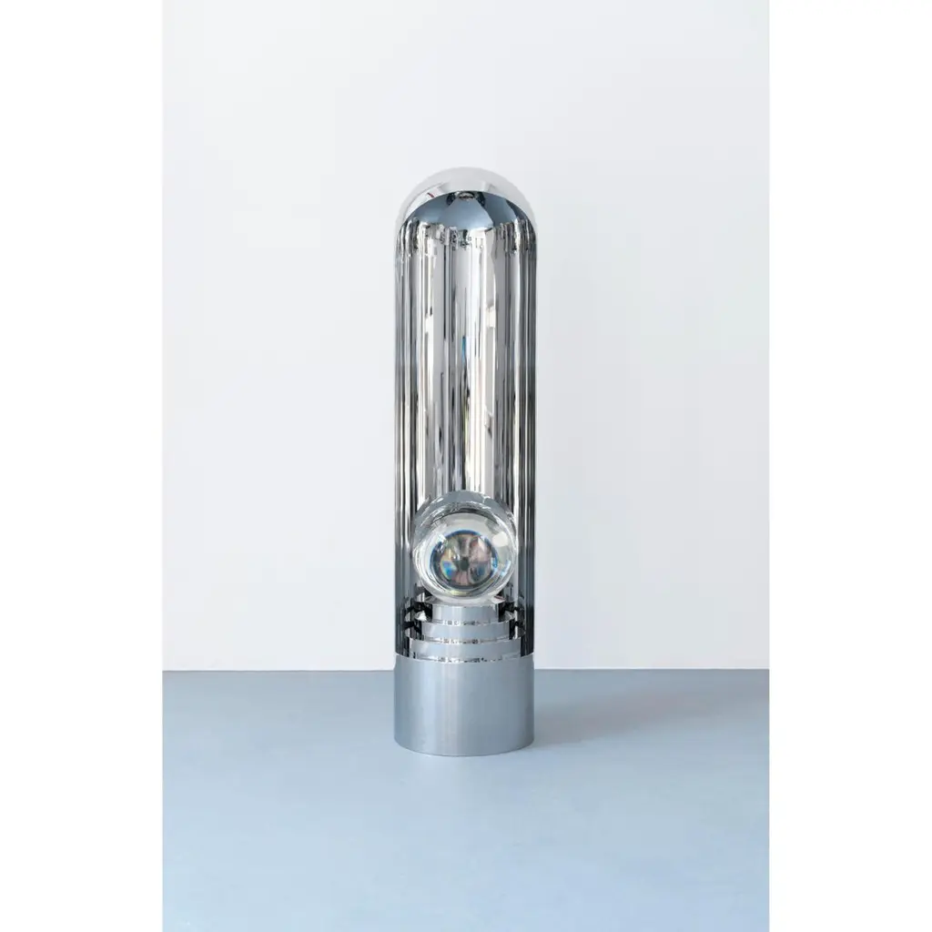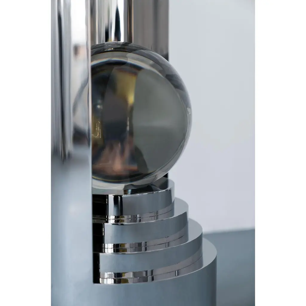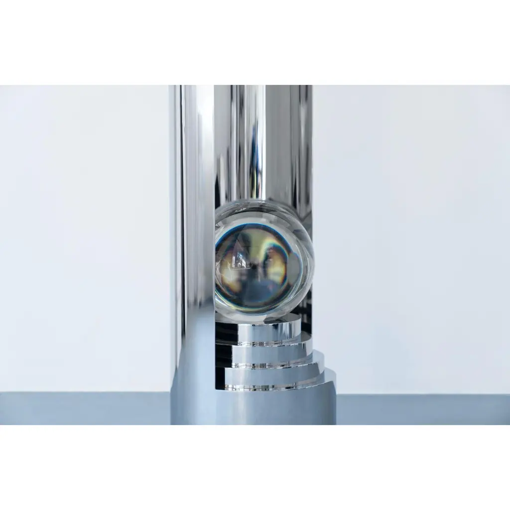 Sanctuary 2-1 table lamp by The ShawDimensions: D15 x W 15 x H 43 cmMaterials: stainless steel, glassWeight: 5 kgAll our lamps can be wired according to each country. If sold to the USA it will be wired for the USA for instance.SANCTUARY was inspired by the memorial hall drew by Étienne-Louis Boullée for Newton in 1783. The hollowing of stars in the dome symbolizes the eternal spirit of Newton. The brilliance of stars makes it possible for people to look forward to it. But it is only a draft and has never been built. The work of this dreamer has made me regret. I hope that this brilliance will serve as a symbol of Newton's spirit, inspiration presents what I think is spiritual. I remember working home every night and being gratified to see the bright moon in the sky, so I want to leave the golden moon halo in my works. THESHAW is the private studio brand created by Shaw Liu in 2017. It aims to shape new styles in aesthetic and conception with modern perspectives using ordinary materials and finest craftsmanship, to describe the spirit and artistry of the products in the frame of freedom and minimalism, and to create exquisite and contemporary visual installation products, while embodying her understanding of the divine thinking and spiritual world.Shaw Liu created the private art studio and the brand “THESHAW” in 2017.The artist has been creating new mannerism works combining modern aesthetic perspectives with various thinkings. The brand is a fusion of future, spatial and three-dimensional elements, and spares no effort to express the feeling of divinity, spirituality, and religion.