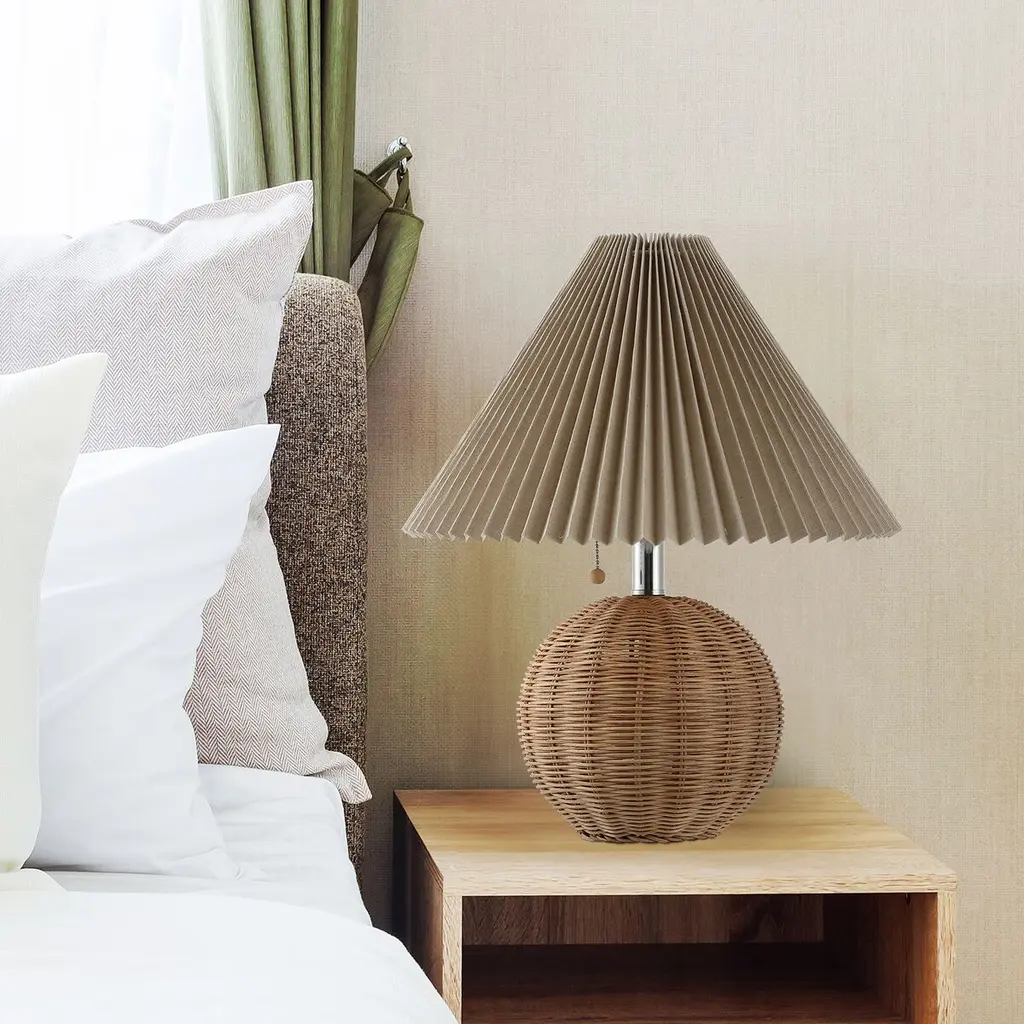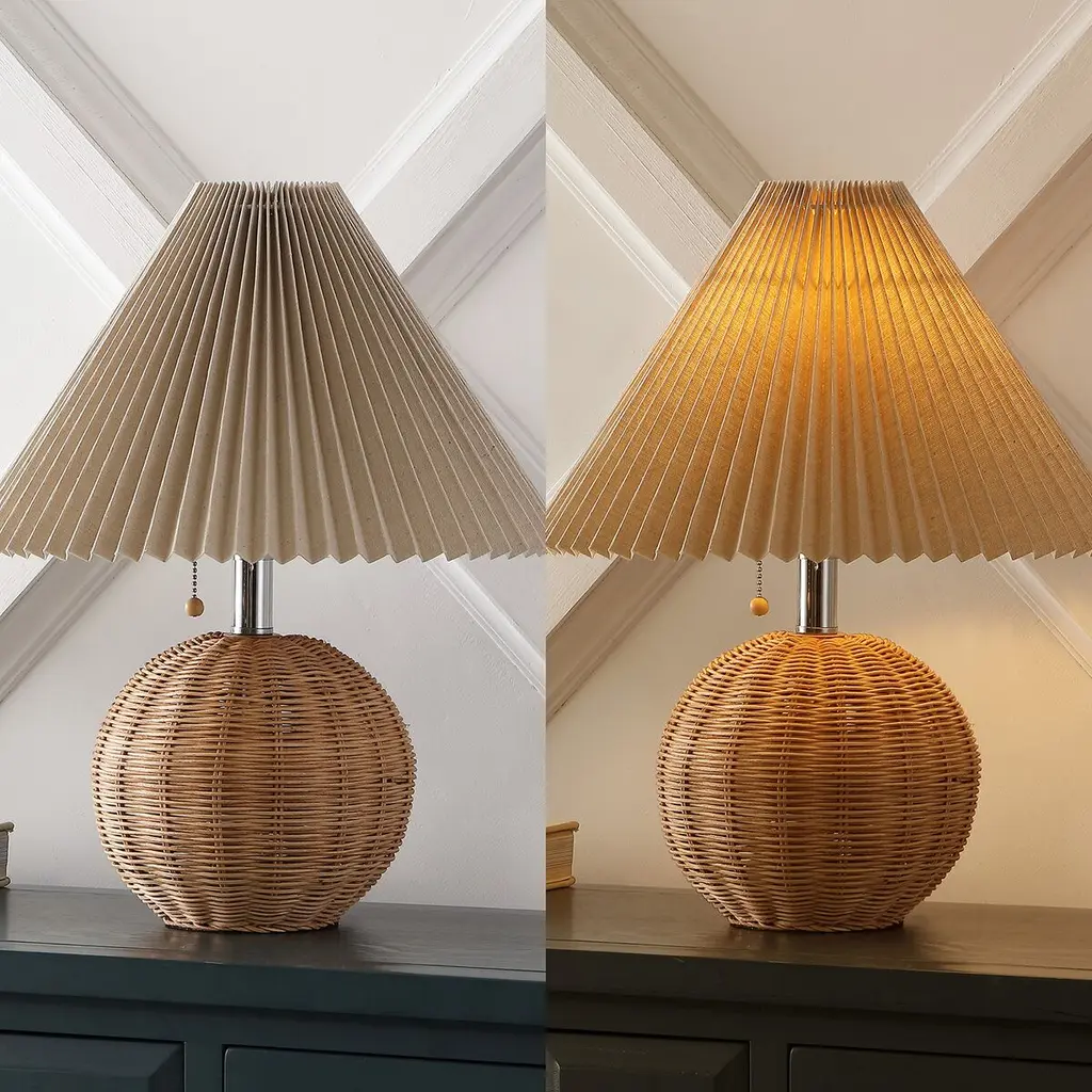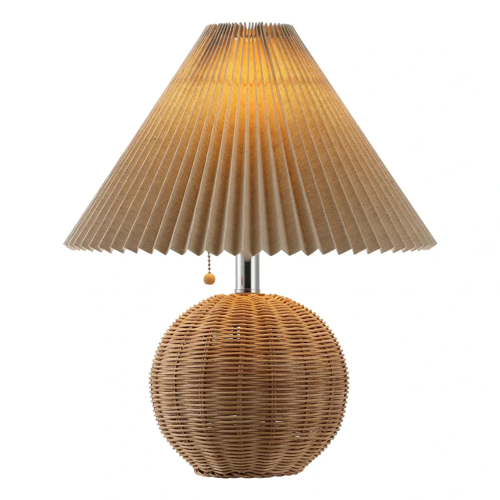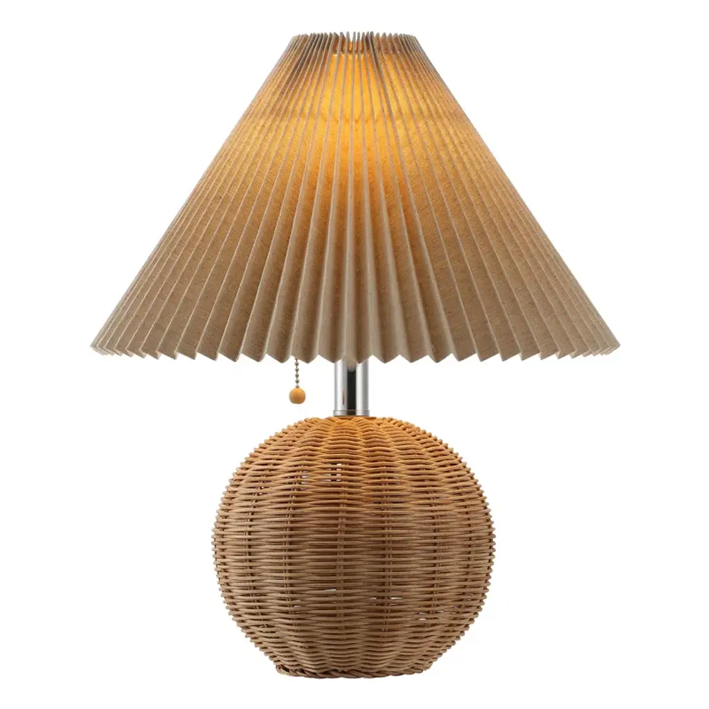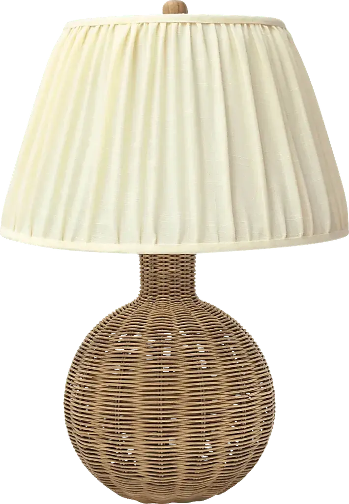 Our wicker version of a mid-century Danish lamp is modern and versatile. Vintage-inspired lamp features a woven wicker base and pleated, linen shade. You'll love its geometric look in a bedroom, living room, or entry. Includes an LED bulb for warm, bright light.
