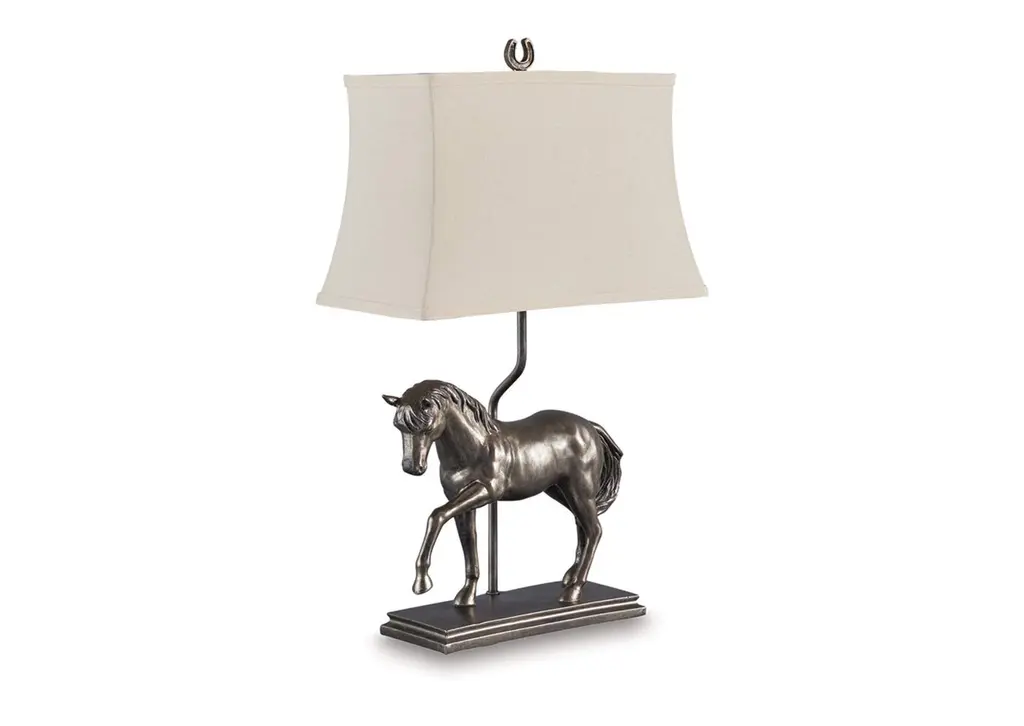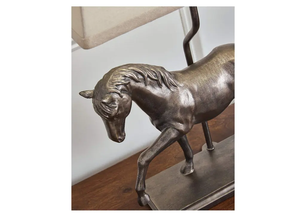 Why settle for standard light fixtures when the Sandorman table lamp adds so much traditional charm to your space? It beautifully captures the equine form in detail, with an antiqued bronze-tone finish adding to its regal air. Whether it's lighting a living area, bedroom or entryway, this stately piece will steal the spotlight wherever it lands. Weight 11.000 lbs. (4.95kgs.)
