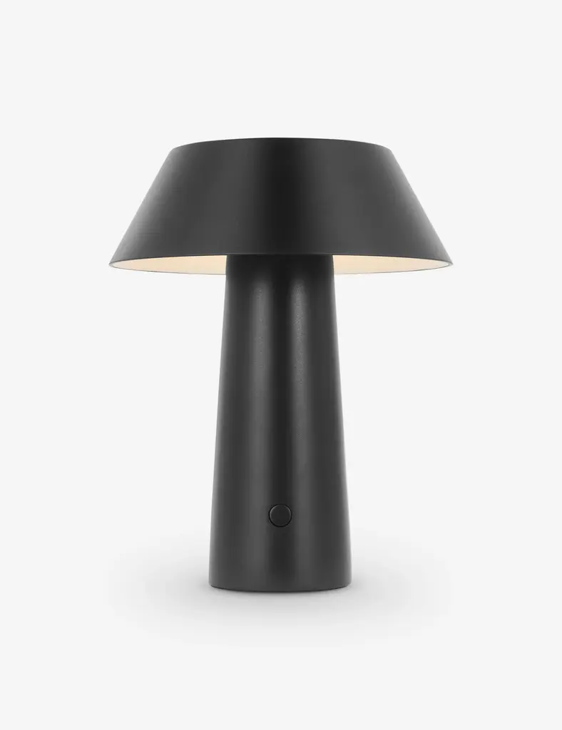 Sleek and understated, the Sanger table lamp offers a linear take on the mushroom silhouette in a portable design. This rechargeable lamp features integrated LED technology, making it a versatile accent for reading corners, al fresco dining, or bedside lighting.