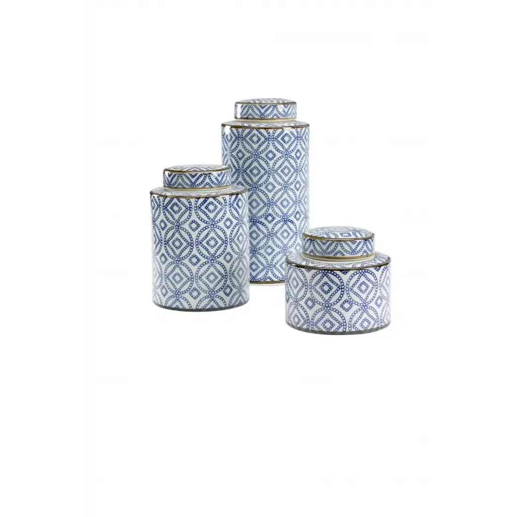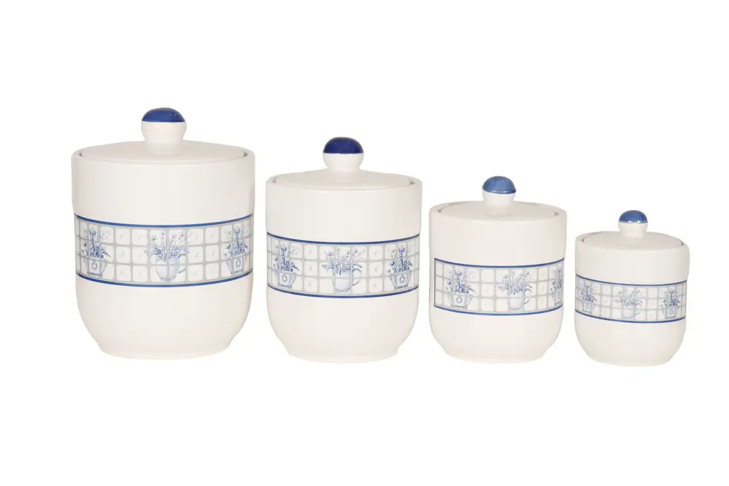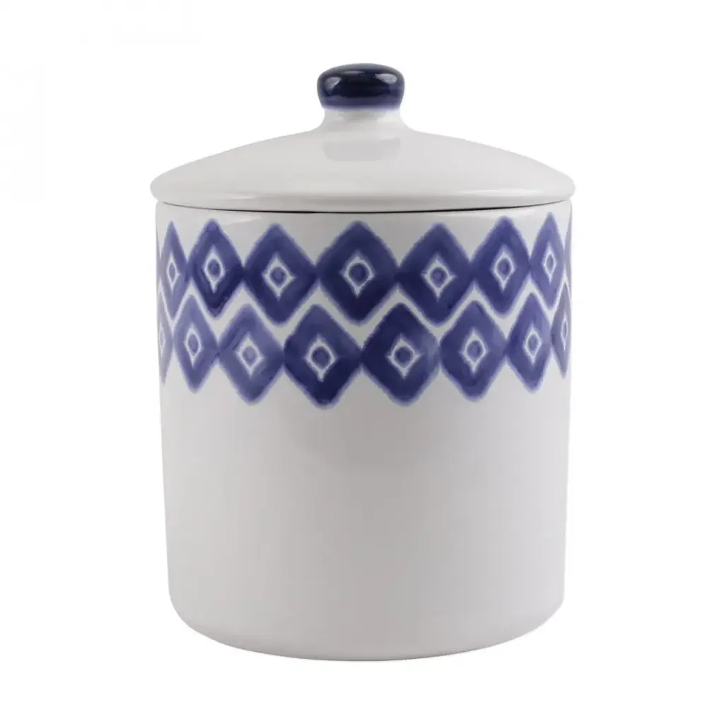 This set consists of one each of the following: Santorini Dot Small Canister, Santorini Geo Medium Canister, Santorini Diamond Large Canister. Since 1983, Vietri has specialized exclusively in Italian handcrafted ceramics, stainless and pewter flatware, mouth blown glassware, lamps, urns and planters. Families of artisans with 3 or 4 generations of history create these special pieces using centuries-old techniques. The subtle color from a paintbrush and the curving stroke of the artist's hand are never repeated in quite the same way, making each piece truly unique.