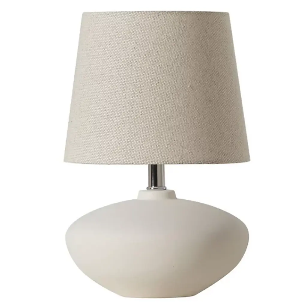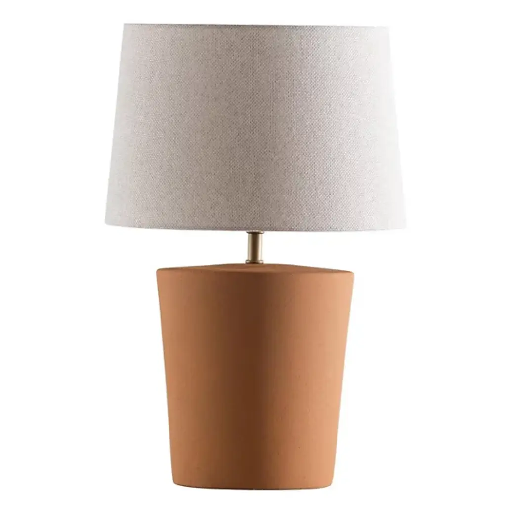 The Santos Table Lamp from Geo Contemporary brings understated charm to any room. Its design features a cylindrical ceramic base topped with a classic fabric shade. The lamp's simplicity allows it to blend seamlessly into various decor styles. The textured fabric shade diffuses light exquisitely, creating a mellow glow. This lamp provides both style and functionality, perfect for bedside tables, living room corners, or home offices. With its clean lines and natural materials, the Santos Table Lamp embodies the essence of Brazilian design.