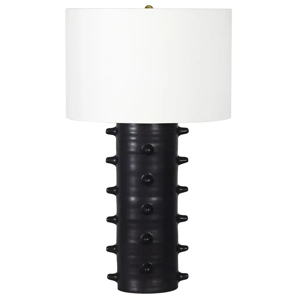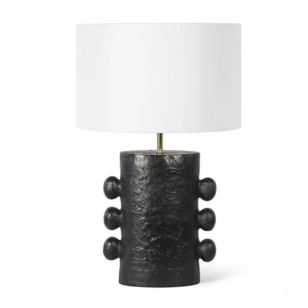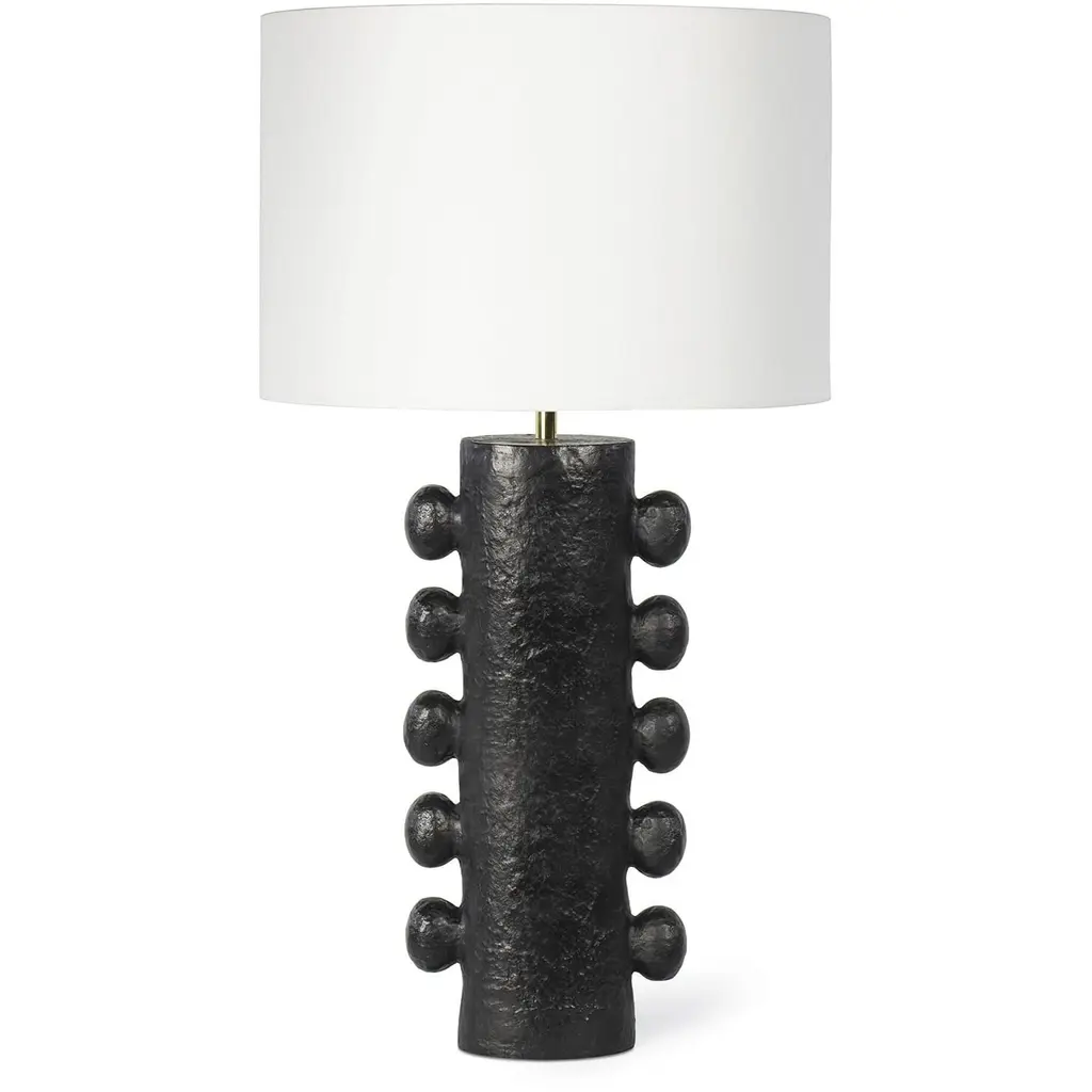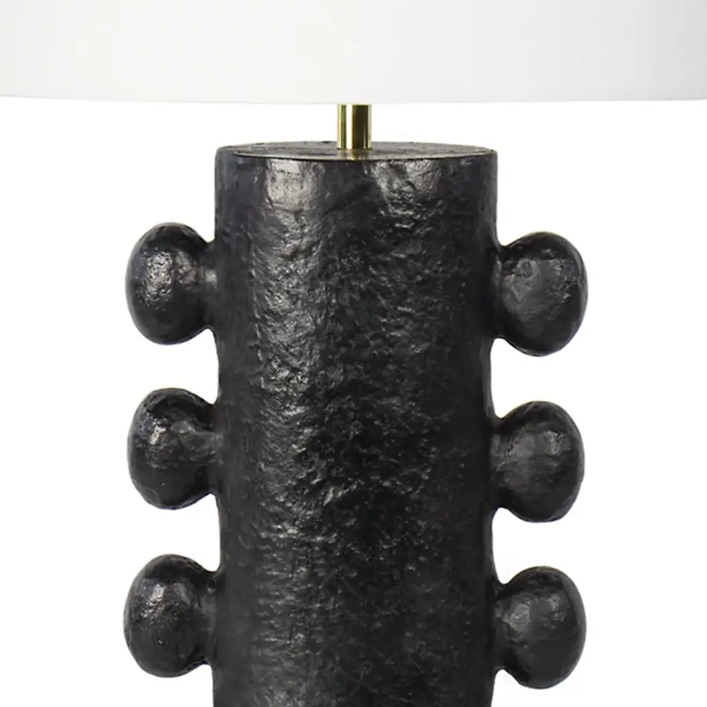 Delight in the abstract design of the Sanya Metal Table Lamp by Regina Andrew. Aluminum takes on a cylindrical shape that is playfully lined with knobby squiggle detailing. A shade of linen continues the lamp’s enduring tubular motif and creates a home for a single lightbulb. Incandescent light is nicely tempered by the lamp’s shade so that your contemporary decorative space can maintain a pleasant glow. This light is best placed on desktops and tables.