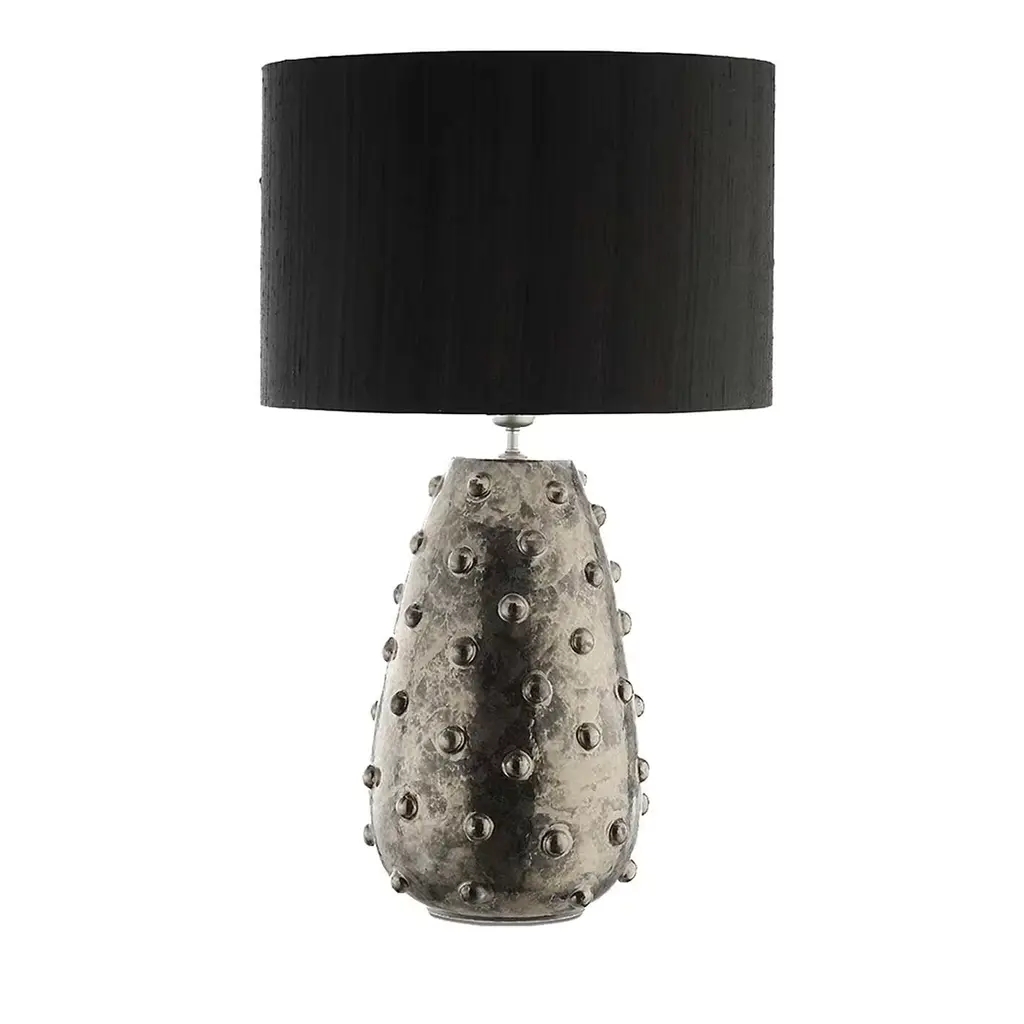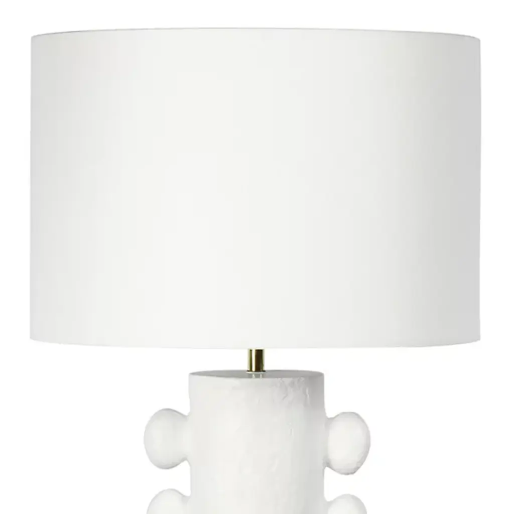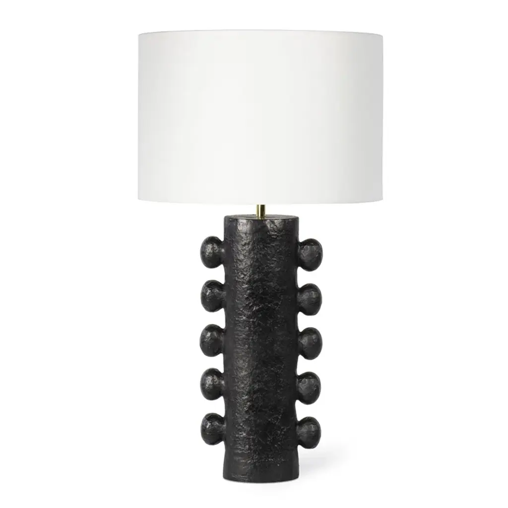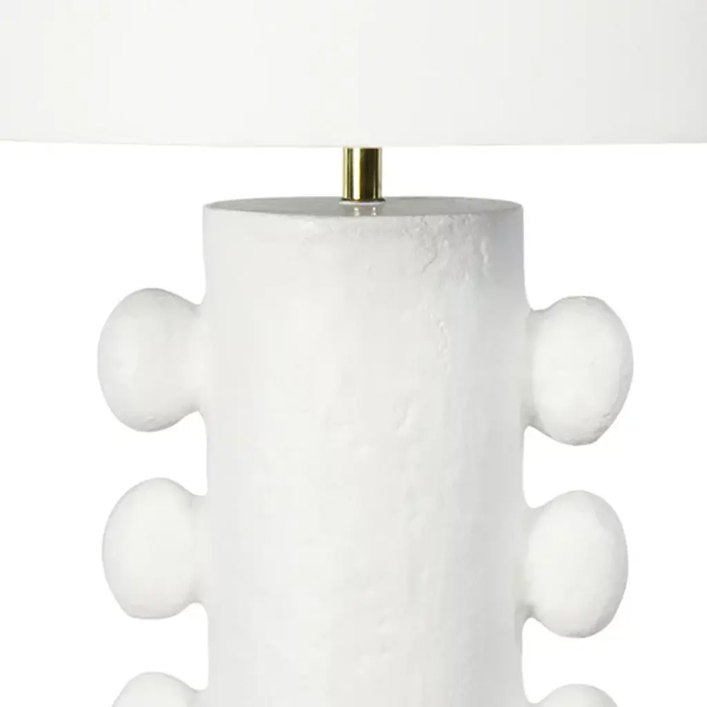 Delight in the abstract design of the Sanya Metal Table Lamp by Regina Andrew. Aluminum takes on a cylindrical shape that is playfully lined with knobby squiggle detailing. A shade of linen continues the lamp’s enduring tubular motif and creates a home for a single lightbulb. Incandescent light is nicely tempered by the lamp’s shade so that your contemporary decorative space can maintain a pleasant glow. This light is best placed on desktops and tables.