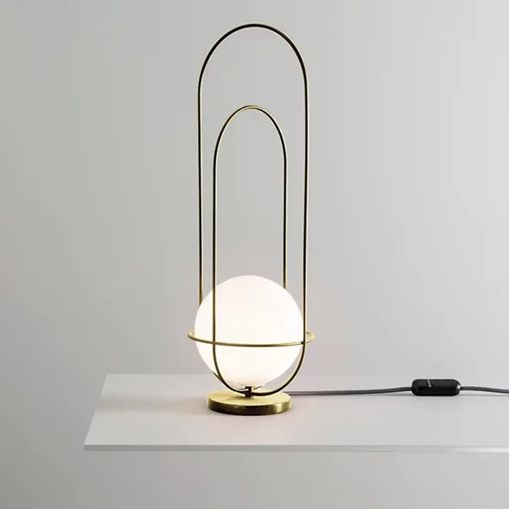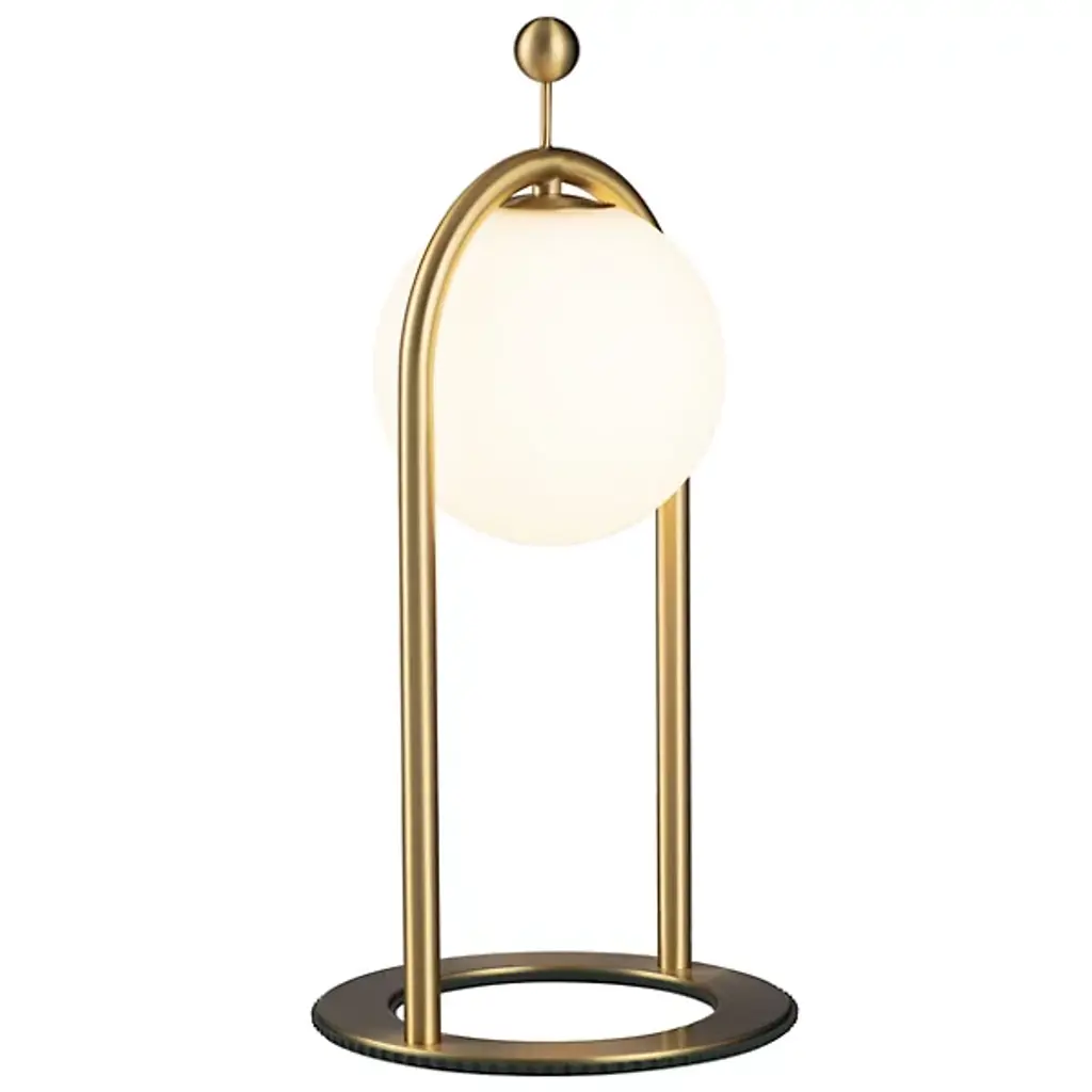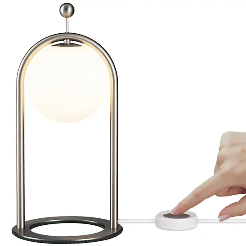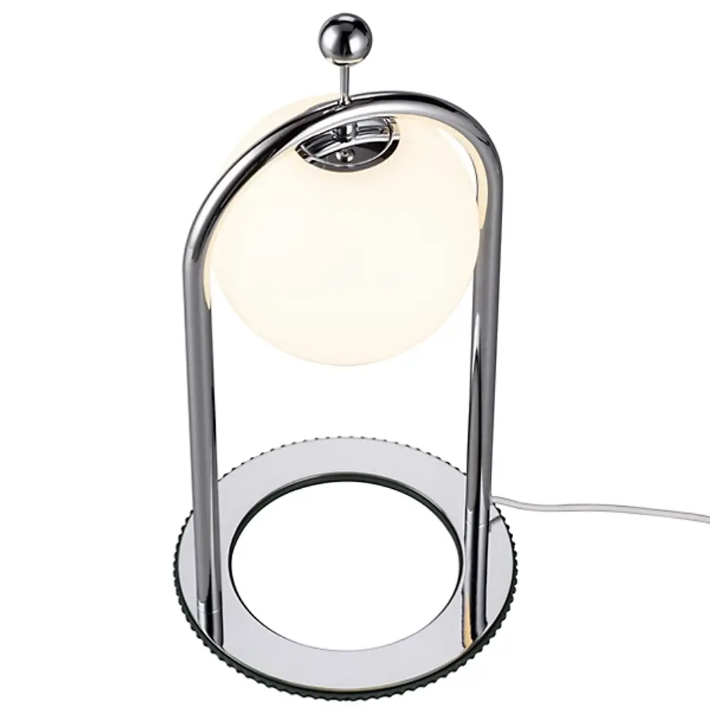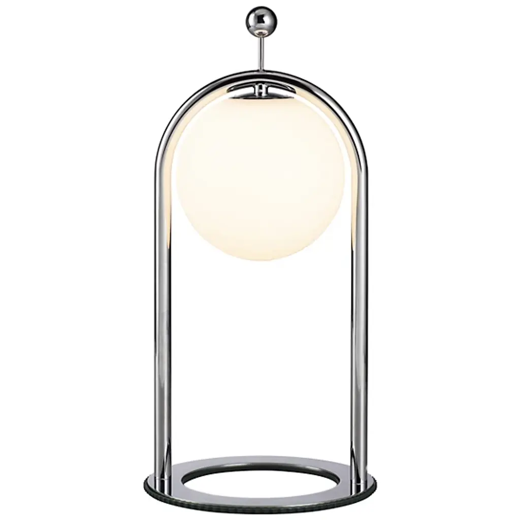 The ever-so-charming Sarbaturi LED Table Lamp from Huxe has come to brighten things up in quite an elegant fashion. This is a marvelous piece of minimal design featuring a single frosted glass orb perched prettily beneath an arched, shiny metal frame. It fluidly connects to a sleek circular base. Reminiscent of moonlight, the glowing orb creates an immediate romantic ambiance, making it an excellent choice of illumination for an array of purposes, like enhancing the dining experience or providing a perfect environment for good conversation.
