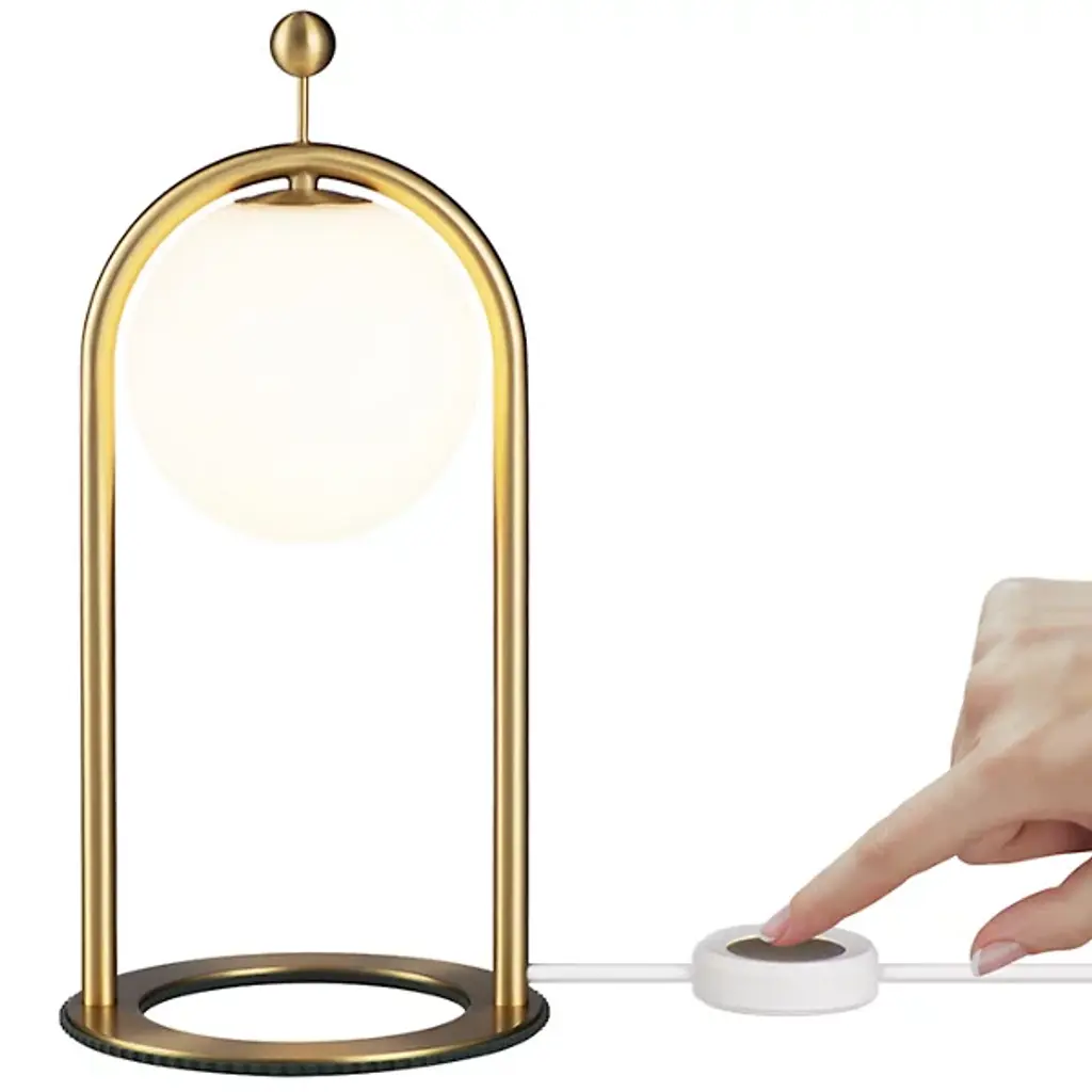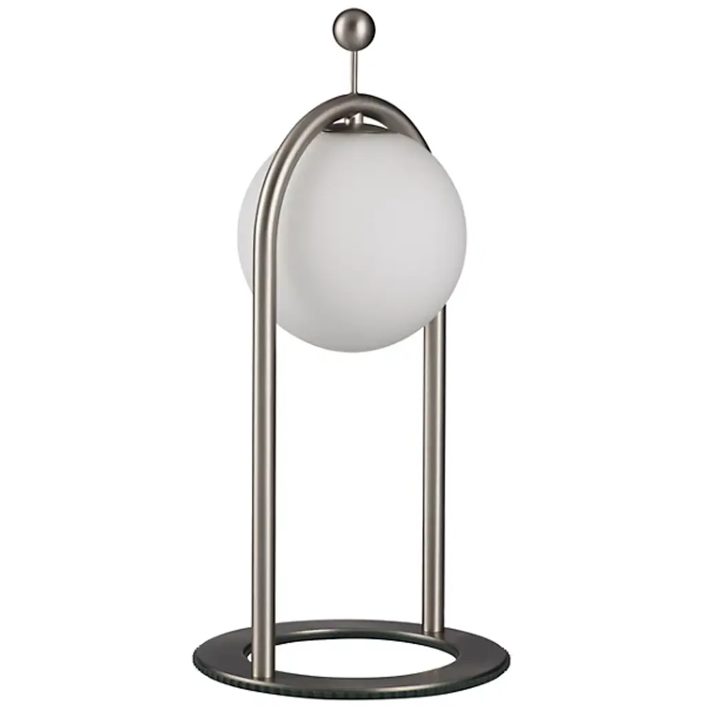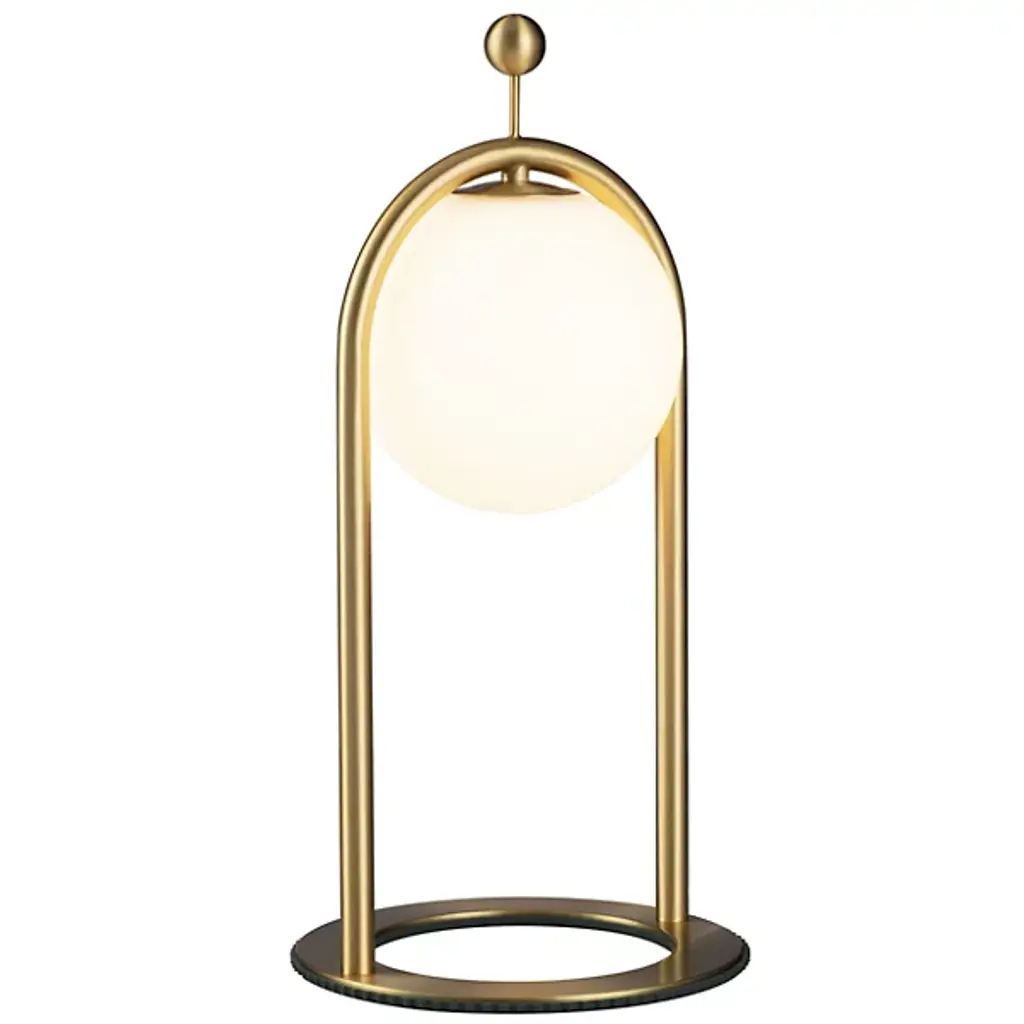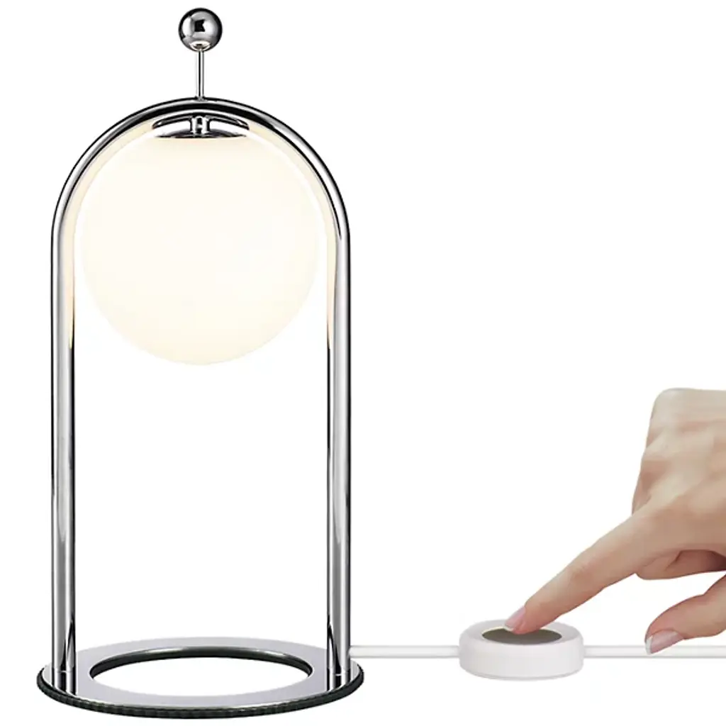 The ever-so-charming Sarbaturi LED Table Lamp from Huxe has come to brighten things up in quite an elegant fashion. This is a marvelous piece of minimal design featuring a single frosted glass orb perched prettily beneath an arched, shiny metal frame. It fluidly connects to a sleek circular base. Reminiscent of moonlight, the glowing orb creates an immediate romantic ambiance, making it an excellent choice of illumination for an array of purposes, like enhancing the dining experience or providing a perfect environment for good conversation.