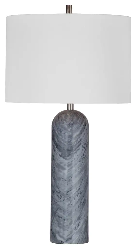 The Sassandra Table Lamp is crafted of marble with a white drum shade. Finished in a gray marble.Features:This gray table lamp features a modern styleThe drum shaped lamp shade features a white finishFeatures a 3 way switchBulb type a required, not includedEasy assembly - just attach harp, finial and shadeFor over a century, Bassett Mirror has been synonymous with style and quality, transforming homes with its sophisticated and timeless designs. With a wide-ranging collection of furniture, lighting, mirrors, and art, Bassett Mirror seamlessly blends modern style with classic appeal. From rustic modern to luxe glam, each piece is thoughtfully crafted to inspire and elevate any space. Committed to exceptional value and customer care, Bassett Mirror makes it easy for homeowners to create beautiful, personalized interiors with confidence.