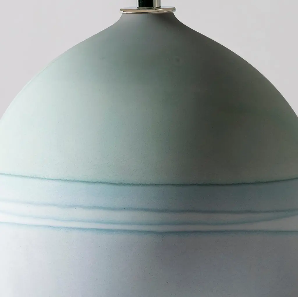 Saturn lamp in mint and grey by Elyse GrahamDimensions: D31 x H49 cmMaterials: Plaster, Resin, Cotton rag Paper, brass, Nickel. Hardware: polished nickel-plated brass uno threaded socketwith turn key switch, in-line dimmer.Molded, dyed, and finished by hand in la. CustomizationAvailable.All pieces are made to order. All our lamps can be wired according to each country. If sold to the USA it will be wired for the USA for instance.This collection of lamps is inspired by striated landscapes causedby glacial erosion as well as the beautiful colors found in foliatedmetamorphic rock and the play of light along the horizon at dawnand dusk.The base of each lamp is hand-cast with hydrocal plaster inside of a unique balloon shape. The interior of each piece is poured with layers of resin, impregnating the plaster with added strength and hardness. Finally, each base is hand-dyed by the artist with layer after layer of custom mixed pigments and then sealed with a UV resistant acrylic coating. Our shades are made by hand using a heavyweight cotton rag paper and attached to a nickel-plated swivel fixture with a turn switch. An in-line dimmer switch on the cord provides adjustable light settings. Due to the nature of the UV sensitive materials in our lamp bases we recommend using LED lightbulbs exclusively.Meet our teamElyse Graham is the founder and creative director of the studio. Driven by Elyse’s unique vision of building a studio that fosters and emphasizes connection, play, and experimentation (of people, processes, and in turn the objects created and shared) our small team works closely and collaboratively on each project. Elyse received a BA in sculpture and semiotics at Brown University. After years of making sculpture and running a business in jewelry design, Elyse decided to merge her separate practices and redirect her attention toward collectible design in 2013. The creative trajectory of the studio is heavily influenced by Graham’s background in fine art, specifically her interest in process-driven and material-based artwork. The studio’s vocabulary of shapes, patterns, and forms comes from a lineage of unconventional processes Graham has developed and built for working with plaster and resin. Graham shares her studio as well as her home with her husband, Lewis Mauk and their daughter, Eero. Miller Robinson is head of our production department. From pigmenting and casting materials for all of our products in plaster and resin to graphic and production design, they wear many hats in our studio. Miller joined our team in 2014 and has been an integral part of designing many of our experimental processes that have lead to the creation of our unique MetaMATERIAL. Like Elyse, Miller has a background in material and process-oriented making, which led to an instant connection and collaborative understanding between the two. Miller received their BFA from Otis College of Art and Design with a focus on painting, installation, performance, and writing. Their individual art practice focuses on the preservation and potentialities of underrepresented histories and encompasses objects, garments, actions, tattooing, and books. Their personal work has been exhibited in Los Angeles at the Southwest Museum, Los Angeles Municipal Art Gallery, Heritage Square Museum, and with Los Angeles Contemporary Exhibitions (LACE), as well as HORESEANDPONY Fine Arts in Berlin.Lewis Mauk is our studio and operations engineer. Working on facilities and production design as well as engineering and leading all of our large-scale constructions and installations, Lewis’ unique set of technical skills gives form and structure to our studio’s unconventional ideas and processes. Lewis has been working behind-the-scenes since the creation of the studio but joined our team full-time in 2020. Consistent with the rest of our team, Lewis has a background in process-driven fine art and has extensive training in woodworking, printmaking, and photography. He received a MFA from CalArts and has worked across the fields of education and fabrication. Lewis’ combined interest in the creation of personal archives mixed with his commitment to sustainable life practices, has brought a focus and important emphasis on designing studio projects and processes that imagine ways to reduce and reuse studio material fragments.