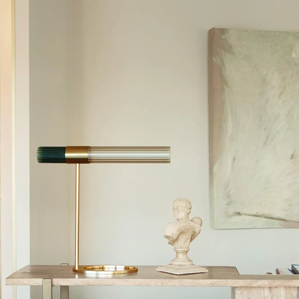 Sbarlusc Table Lamp by Luce TuDimensions: 49 x 46 cmMaterials: Brass and glassSbarlusc in the Milanese dialect represents the sparkle of a precious and very bright object. The colored glasses, which combine with each other to create games of color and light, are embedded in the illuminated bodies like glittering jewels. Entirely handmade by the craftsmen of the Milan area, these lamps combine advanced lighting technology with Fine and precise craftsmanship.Luce Tu is the story of two siblings who are in love with Milan, their hometown.With the aim of enhancing the city's historical artisan tradition without losing its past legacy, each lamp contains a fragment of Milanese history. From the choice of the materials selected to design the lamps to the processes and skills chosen, our IDEA is to hand down the historical and cultural background that is inseparably linked to the soul of our lamps. Hence, the choice of product names in the old dialect.Thanks to the skilled hands of our artisans, who bring their valuable knowledge and handcrafting techniques, Luce Tu proposes handmade luxury lamps in a captivating New Decò style deeply rooted in the city's history.All our lamps can be wired according to each country. For instance, if sold to the USA, it will be wired for the USA.