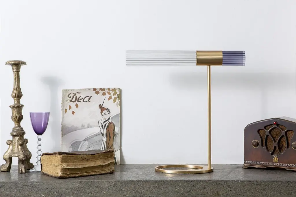 Sbarlusc table lamp by Luce TuDimensions: 49 x 46 cmMaterials: Brass and glassSbarlusc in Milanese dialect represents the sparkle of a precious and very bright object. The colored glasses, which combine with each other creating games of color and light, are embedded in the illuminated bodies like glittering jewels.Entirely handmade by the craftsmen of the Milan area, these lamps are the conjugation between advanced lighting technology and Fine and precise craftsmanship.Luce Tu is the story of two siblings in love with Milan, their hometown.With the aim of enhancing the historical artisan tradition of the city without losing its past legacy, each lamp contains a fragment of Milanese history. From the choice of the materials selected to design the lamps to the processes and skills chosen, our IDEA is to hand down the historical and cultural background which is inseparably linked to the soul of our lamps. Hence the choice for product names in old dialect.Thanks to the skilled hands of our artisans, who bring their valuable knowledge and handcrafting techniques, Luce Tu proposes handmade luxury lamps with a captivating New Decò style, deeply rooted in the history of the city.All our lamps can be wired according to each country. If sold to the USA it will be wired for the USA for instance.