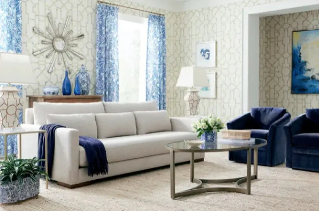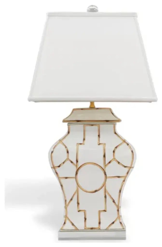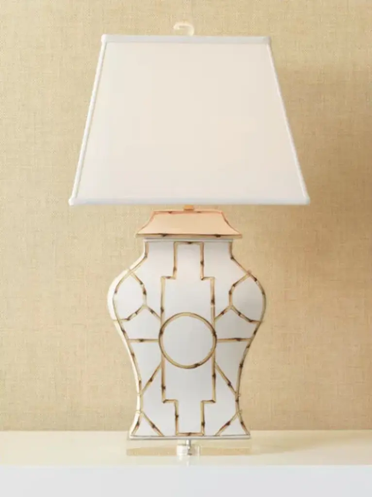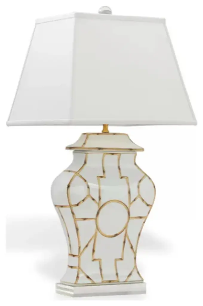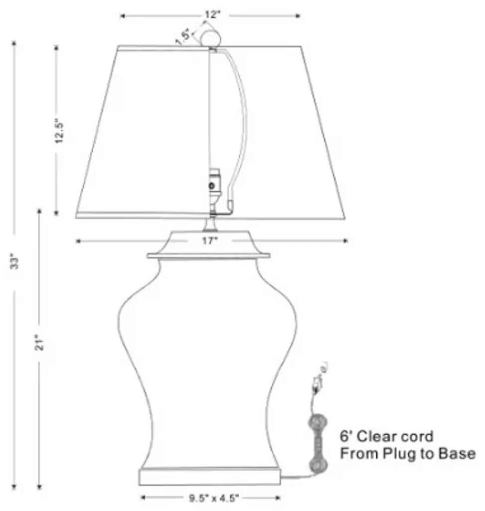 Named in honor of famed decorator Billy Baldwin, the Baldwin Blue Lamp is inspired by one of his favorite Scalamandre wallpapers. This stunning lamp features hand-painted porcelain with solid brass hardware and a clear lucite stand. A crystal ball finial adds an elegant finishing touch. The soft-back rectangular tapered empire shade is made from eggshell linen/cotton fabric and features a brass spider. Perfect for adding sophistication to any room, the Baldwin Blue Lamp is available in white and blue and includes a 3-way switch with a 150-watt max bulb.Features:Hand-painted porcelain with solid brass hardwareLucite stand and crystal ball finialSoft-back rectangular empire shade in eggshell linen/cotton fabricUL ListedOverall Dimension: 33"H x 17"W x 14"DShade: (12" x 9") x (17" x 14") x 12.5"SH.Fabric : Eggshell Linen/CottonMaterials: porcelain, luciteColors : Blue with Gold3 way switch. 150 watt max.Bulb not included.Product ID: LPAS-286-03