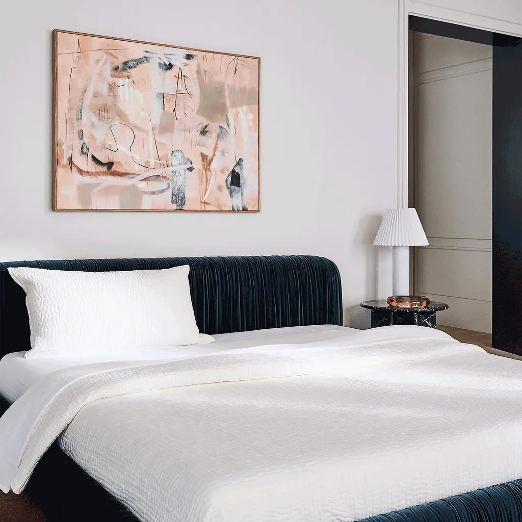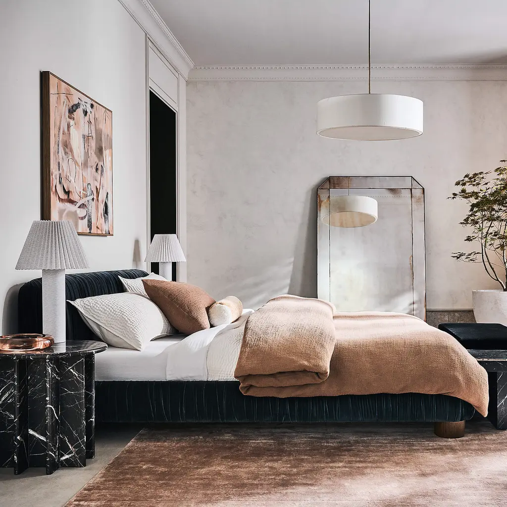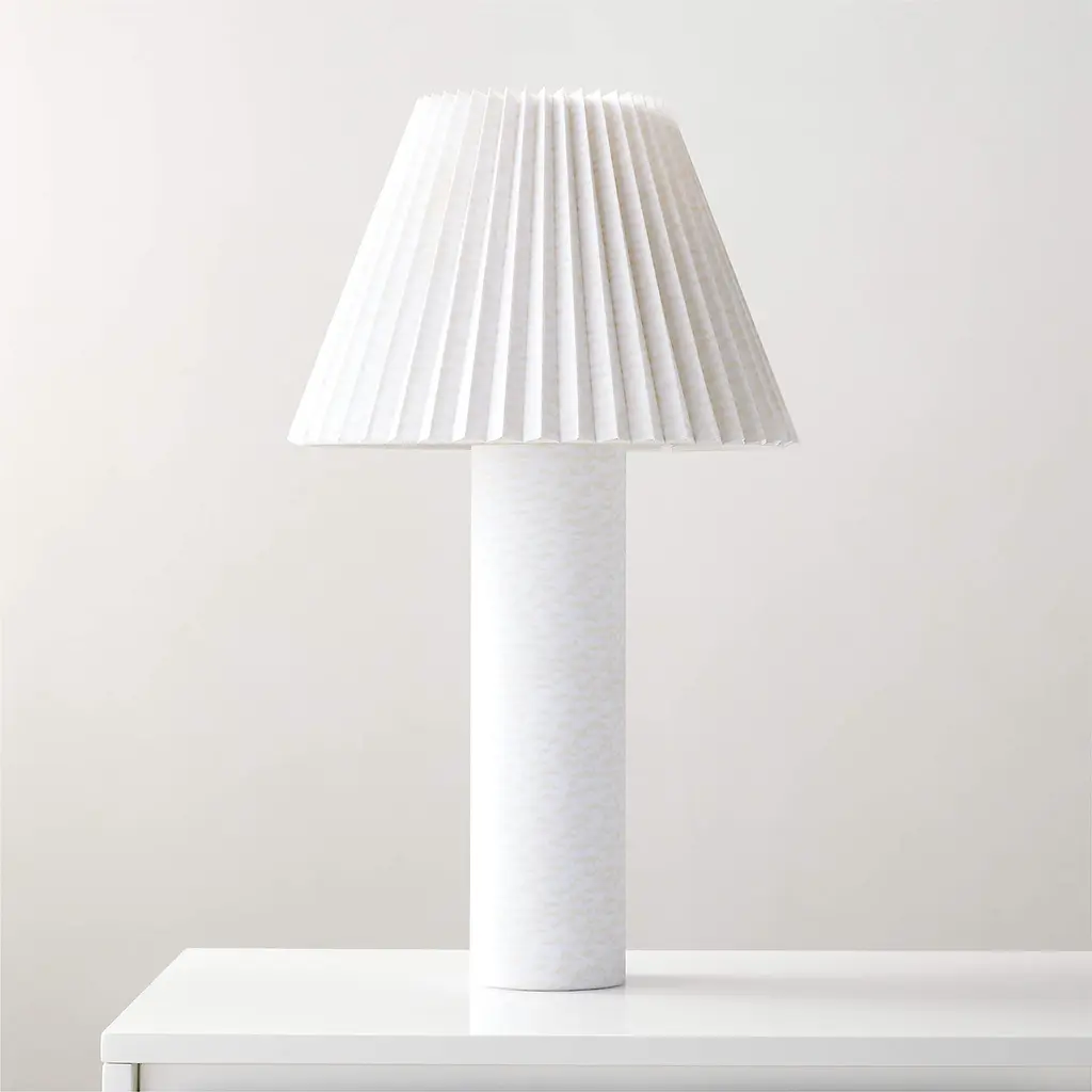 "This is one of my favorites," says Chicago-based designer Kara Mann of this playful table lamp. Designed through the eyes of an '80s teen, the lamp reflects a modern aesthetic while flirting with classic feminine beauty. Mann wraps the lamp in a cotton fabric and tops the design with a matching pleated shade for a casual pattern-on-pattern, '80s mod look. "There's a simplicity about it, but it has a lot of personality as well." CB2 exclusive.