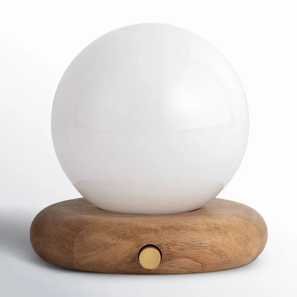 Sean Lavin Mina 1-light rechargeable table lamp in matte white finish with crystal shade