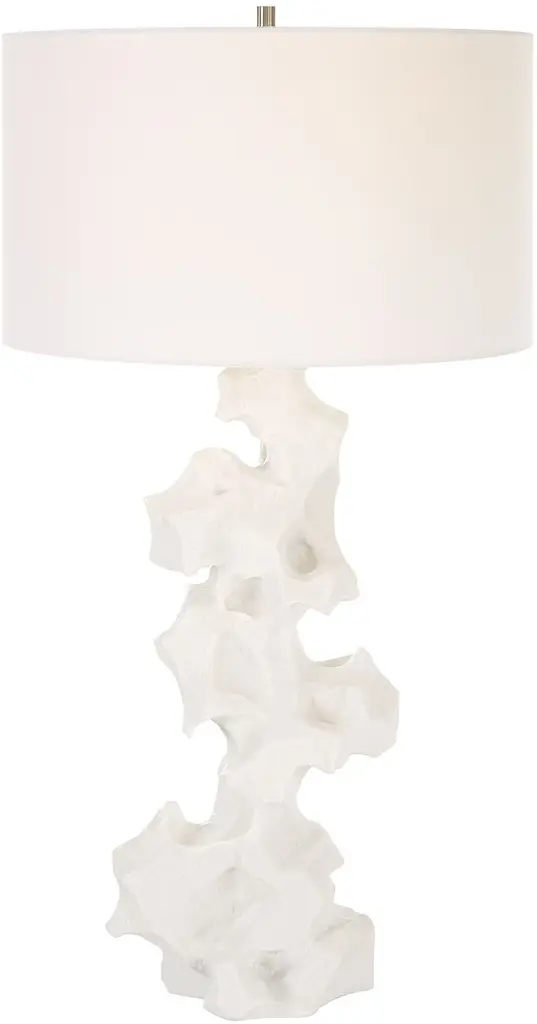 Expertly crafted from high-quality man-made stone to mirror Thassos marble's pristine beauty, this lamp offers soft, ambient lighting and serves as a striking modern art piece for any contemporary space.