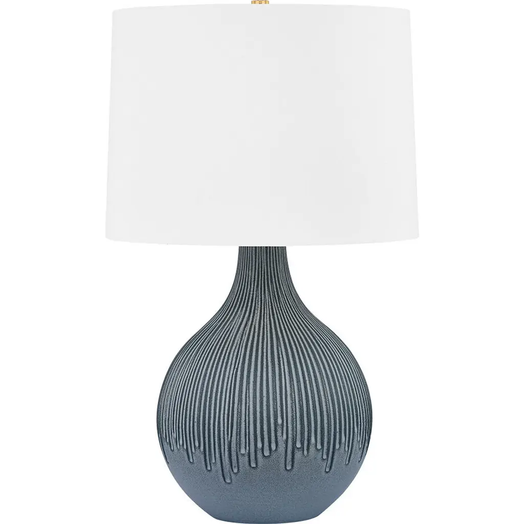 Black is anything but boring in this tall ceramic table lamp, which is amped up with tons of carved texture. Topped with an off-white linen tapered drum shade, this classic combo pairing is made for today's modern home. This lamp is also available in a sand finish for a different look.