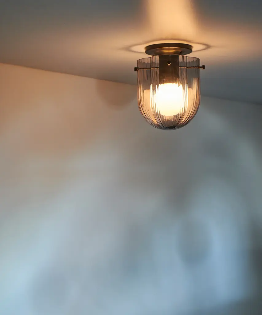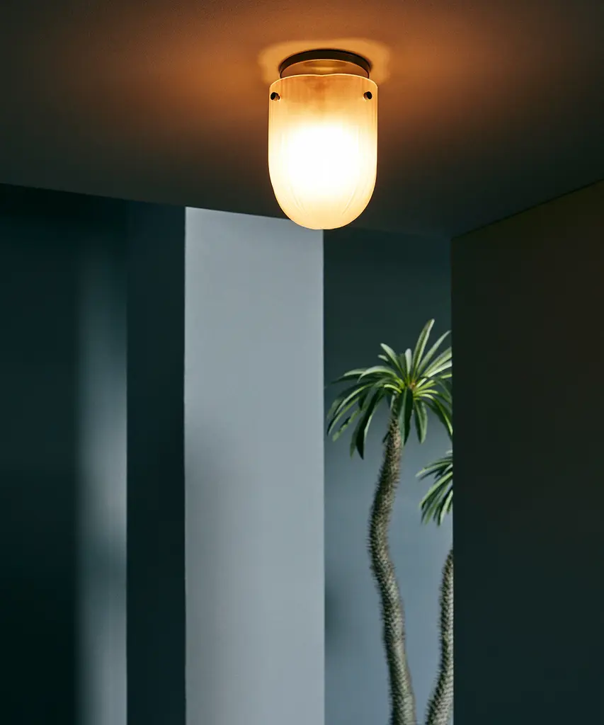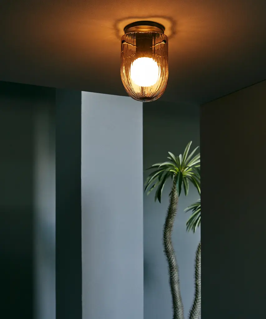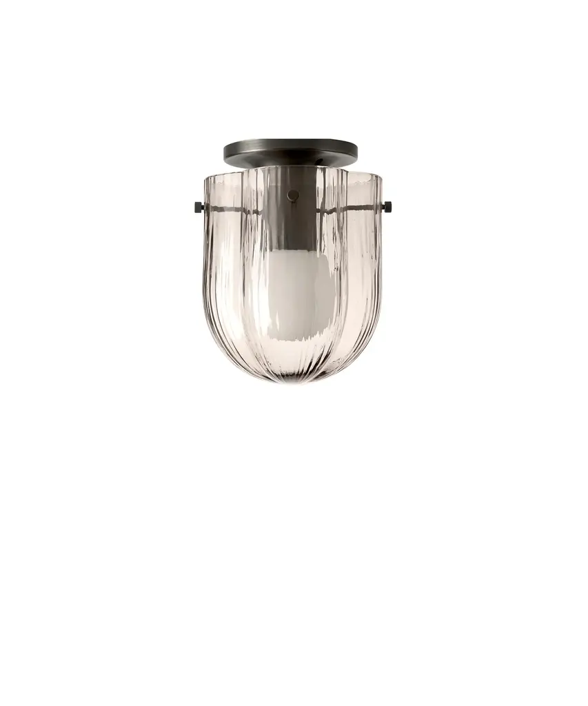 The collection comprises a Table Lamp, Ceiling Lamp, and Pendant, each of which can be configured with a shade in Smoke, a lightly tinted translucent glass that reveals the in- ner structure of the lamp, or Coral, where the interior of the shade has been sand-blasted to create a clouded effect. Each Seine lamp draws on the power of glass to soften, layer, and blur light, creating a dreamy reflective ambiance. Designed by Space Copenhagen for Danish design purveyor, Gubi.