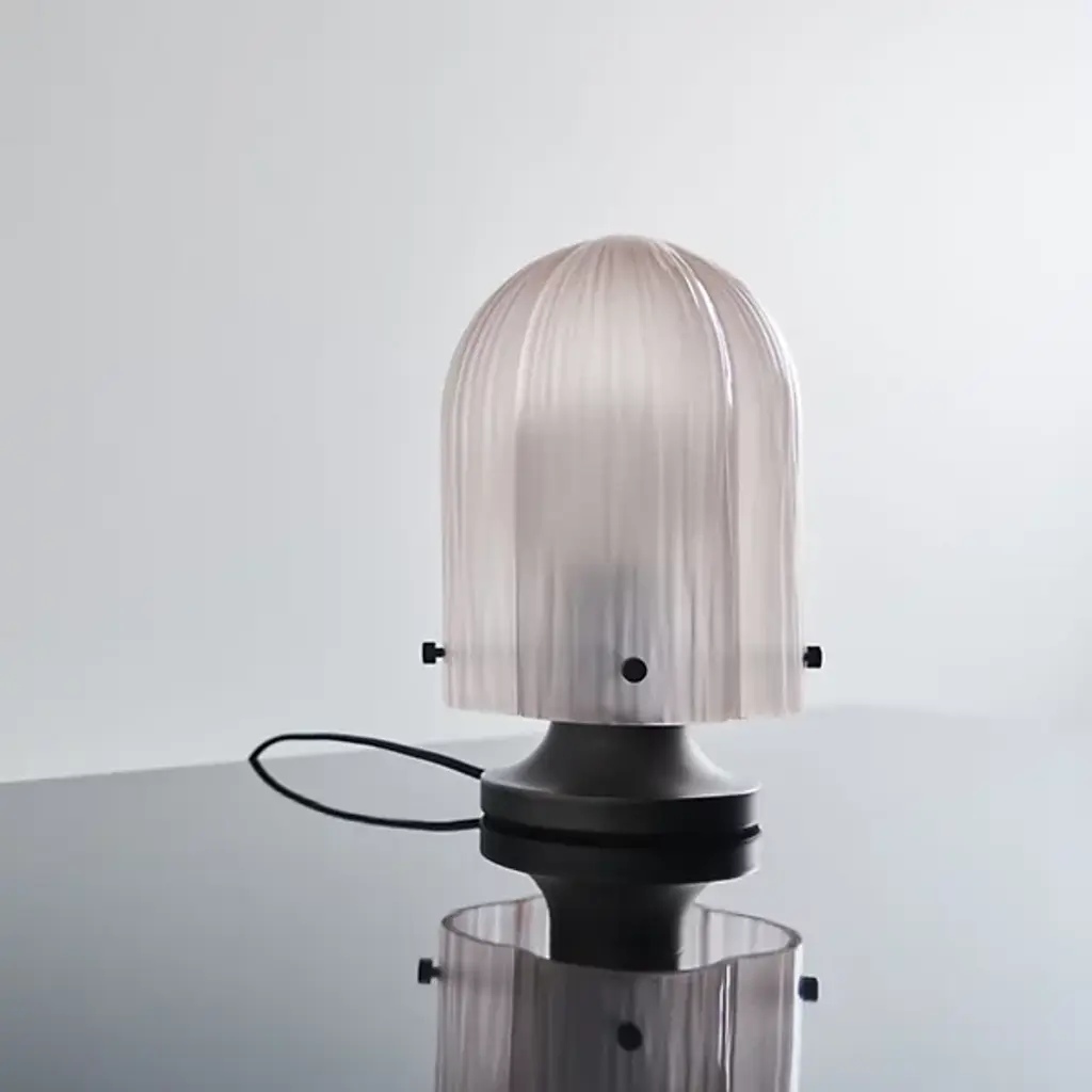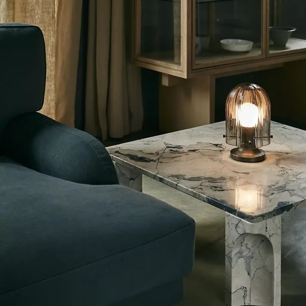 The Seine Table Lamp was designed by Space Copenhagen in 2022 for Gubi. Contemporary in style with Scandinavian influence, it’s composed of mouth-blown glass and brass. The rippled and textured look of the glass was meant to evoke the look of moving water, and the result is an elevated and enchanting illumination experience. Place the Seine solo or in multiples among spaces that would benefit from the form and function.