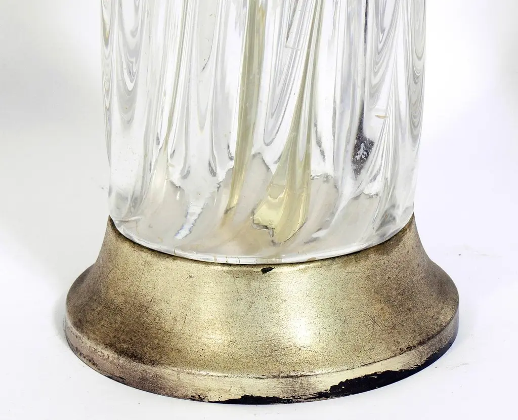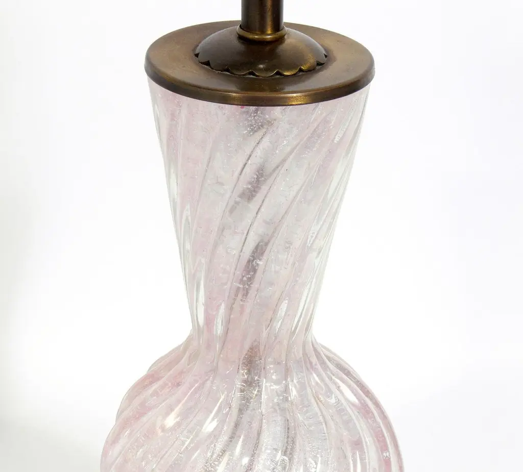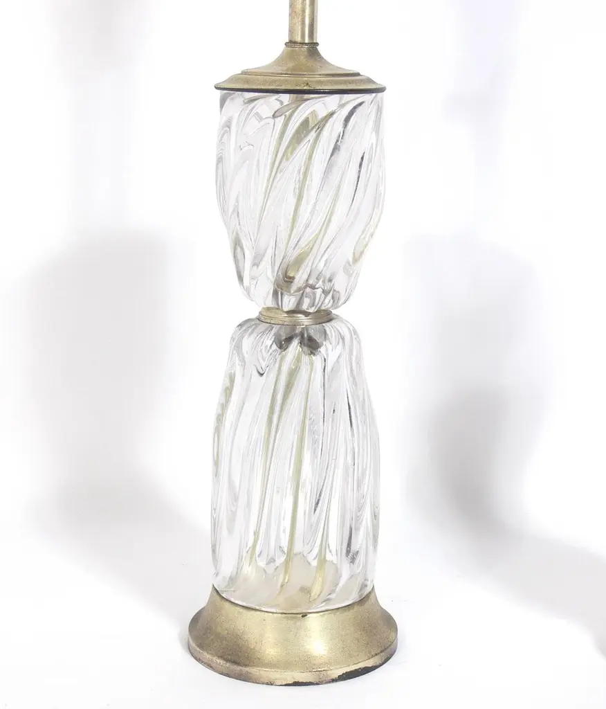 Selection of Murano glass lamps, in the style of Barovier and Toso, Italy, circa 1950s. The lamp pictured on the left measures 41.5" H to the top of the shade. The lamp pictured on the right measures 33" H to the top of the shade. They retain their warm original patina. Rewired and ready to use. They are priced at $650 each.