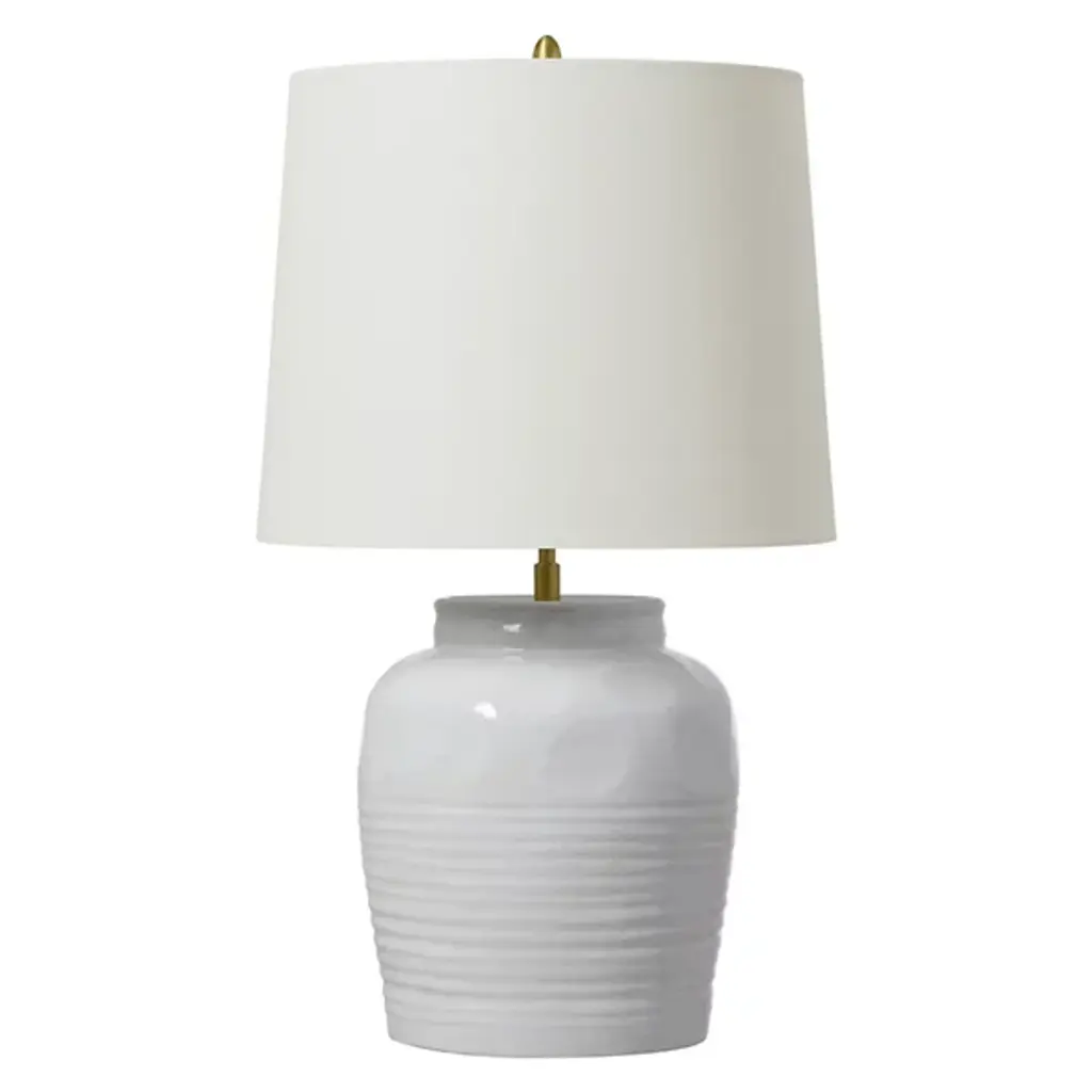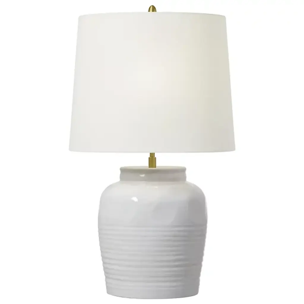 The Selena Table Lamp from Visual Comfort Studio draws inspiration from vintage Japanese ceramics, as envisioned by designer Thomas O'Brien. Its distinctive ceramic base features subtle ribbing and textural impressions and is topped by a linen fabric shade that disperses a gentle, warm glow. This lamp balances traditional influences with clean lines for versatility across different settings. Its cylindrical profile sits firmly within many design contexts while maintaining its unique character. The Selena Table Lamp works exceptionally well on office desks or as matching pairs flanking a bed, providing functional lighting with a hint of artisanal craftsmanship.