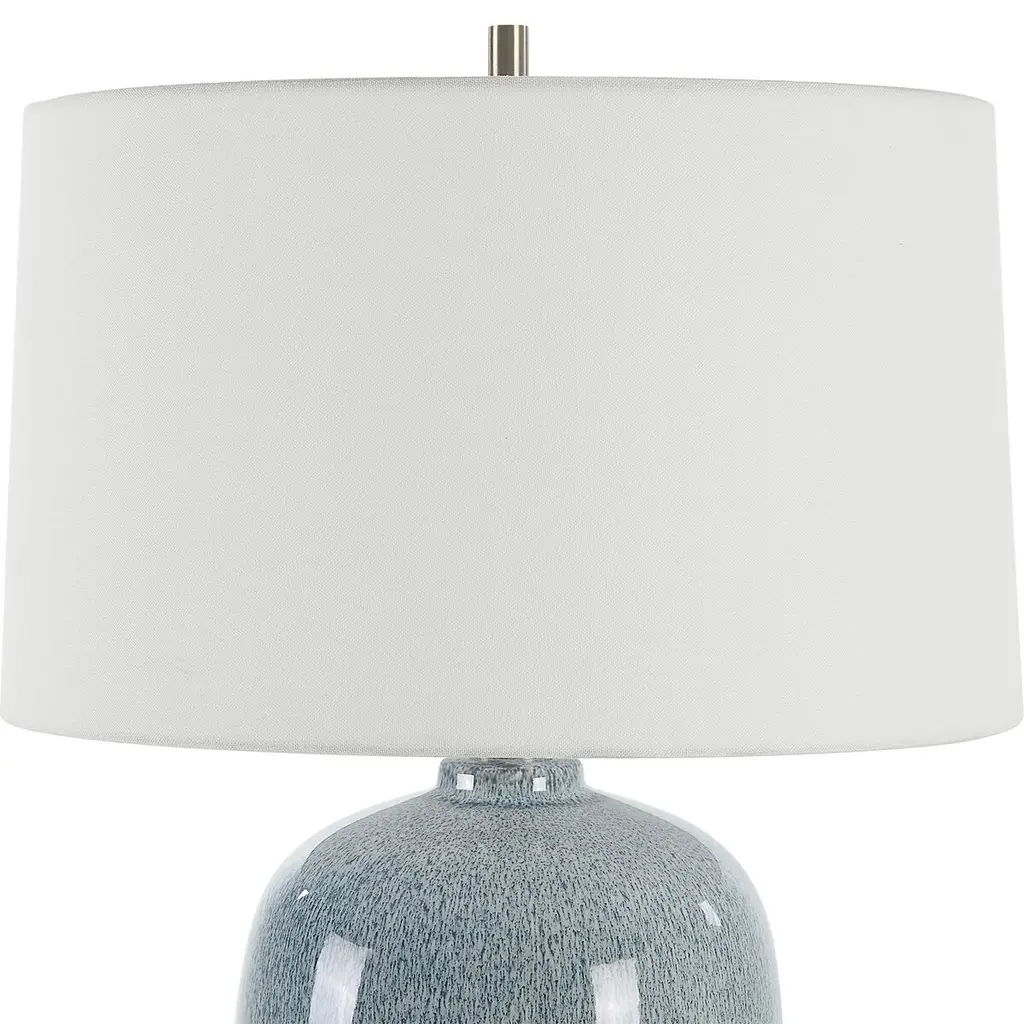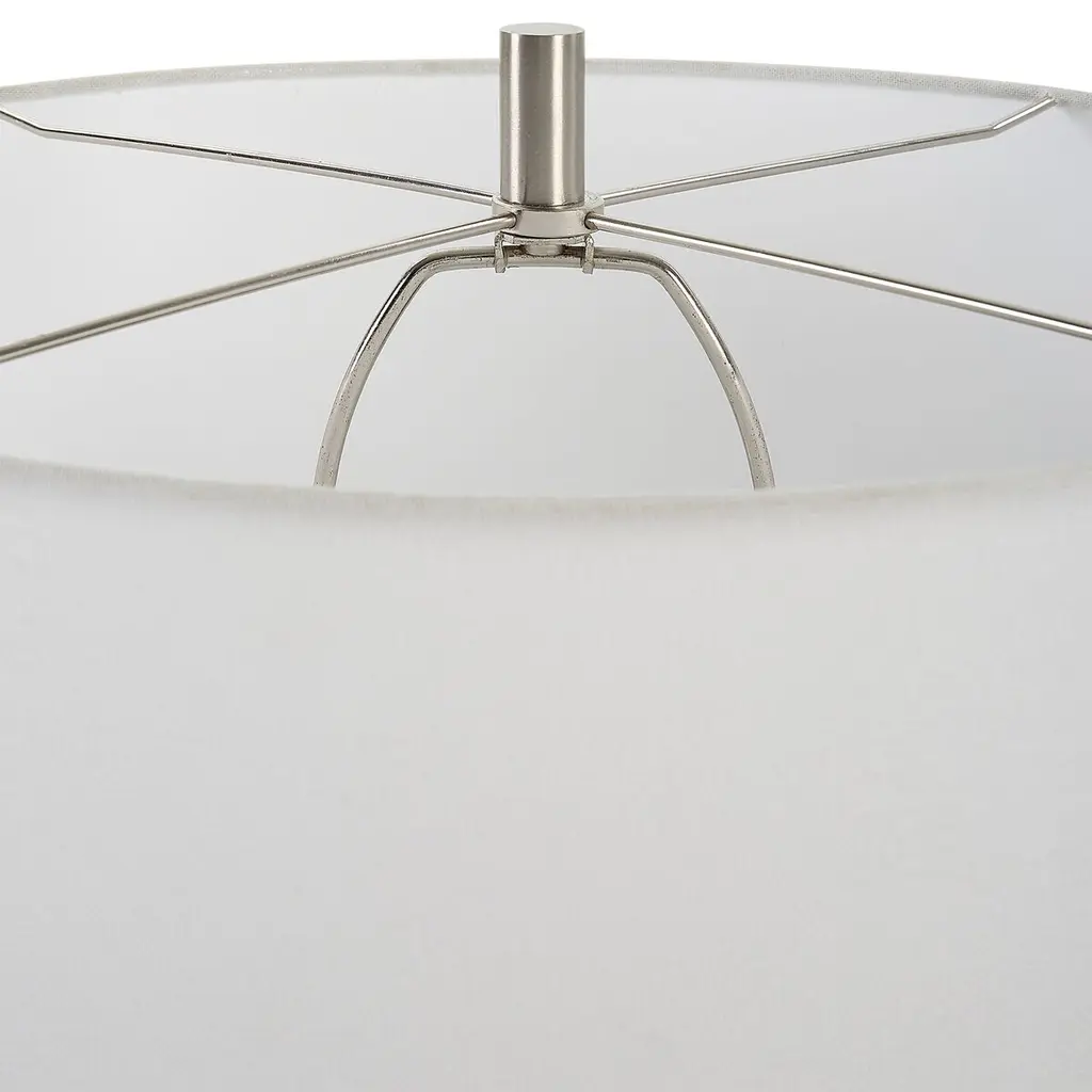 Illuminate your space with the Selene Table Lamp, a stunning piece that combines artistry and functionality. This ceramic table lamp is adorned with a serene glaze, beautifully complemented by elegant brushed nickel accents. Topped with a crisp white linen shade, it casts a soft, inviting glow. Each lamp is uniquely crafted, with slight variations in the finish, making every piece a one-of-a-kind addition to your decor. Embrace the subtle elegance and timeless appeal of the Selene Table Lamp, perfect for enhancing any room with its sophisticated charm.