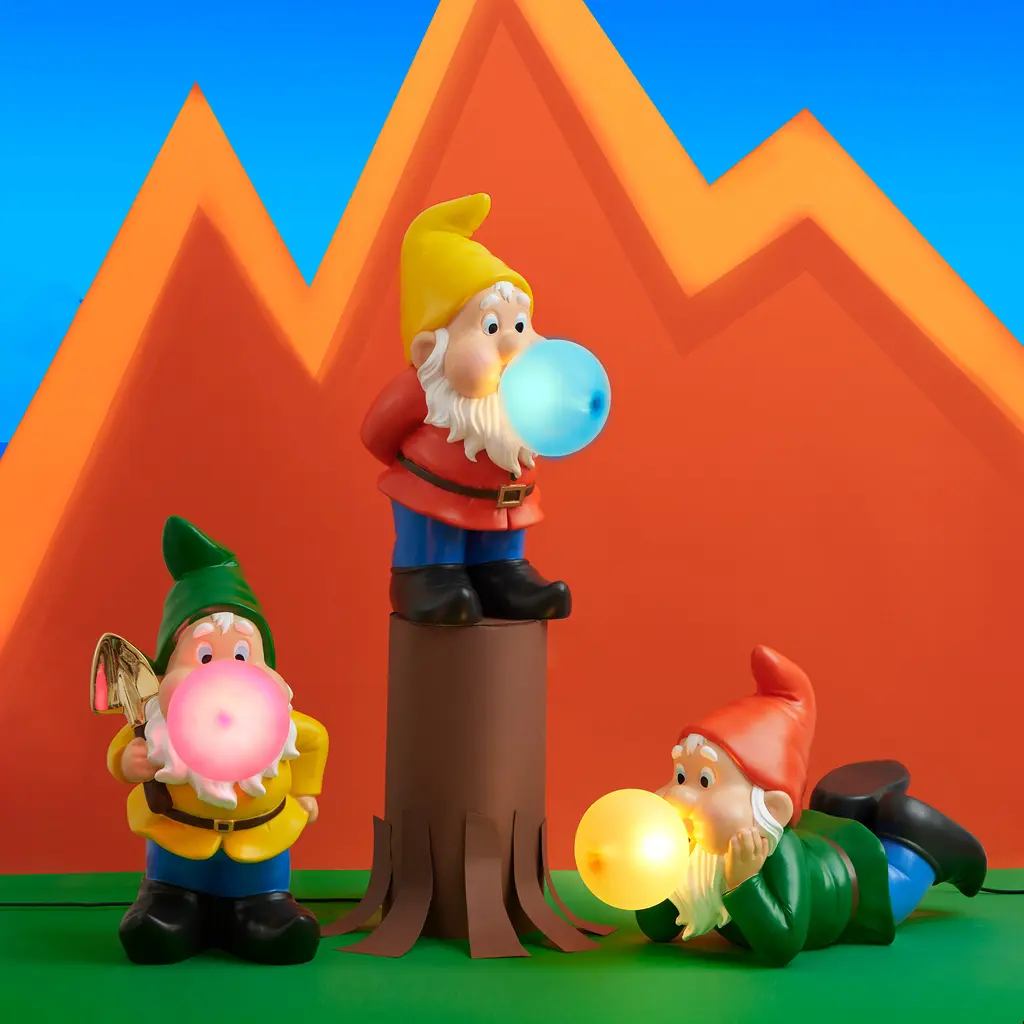 Add a touch of playfulness to a home office or a child’s room with the Gummy Working Lamp. Designed by Uto Balmoral for innovative brand Seletti, this lamp brings a fairy tale dwarf to life. The fun character holds a spade and blows a pink bubble gum balloon. Made of resin, this table lamp boasts vibrant colors and a shiny golden finish on the spade. The LED illuminates from inside the balloon with a pink light. This lamp is conveniently dimmable and allows the user to easily adjust the intensity of the light. A great way to brighten up any space, the Seletti Gummy Working Lamp is also perfect for children’s rooms.