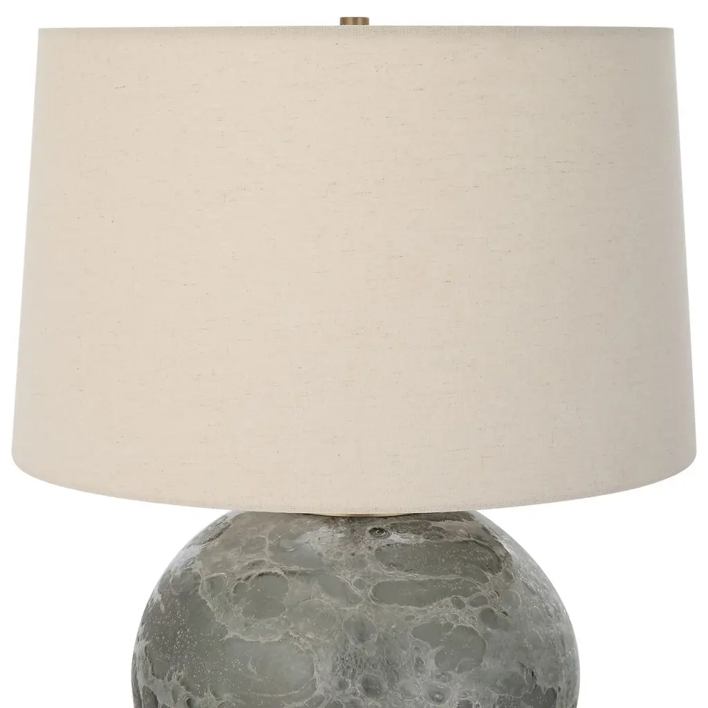 The Selina Table Lamp is a stunning piece that exudes elegance and sophistication. Its centerpiece is a beautifully crafted art glass with a smoky gray hue and a textured surface that captures the eye. Complementing this is the antique brushed brass hardware, adding a touch of timeless charm. The lamp is crowned with a tapered hardback shade, enveloped in a light oatmeal linen fabric that features natural slubbing, offering a subtle yet refined finish. This lamp is a perfect blend of modern design and classic elements, making it a versatile addition to any decor.