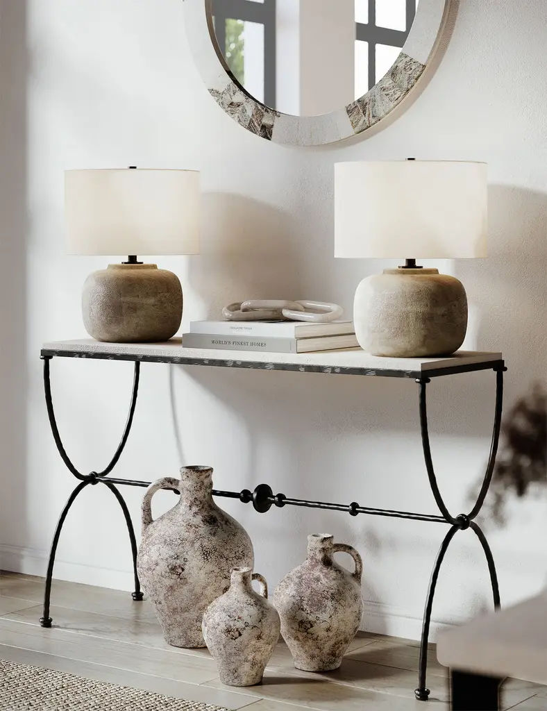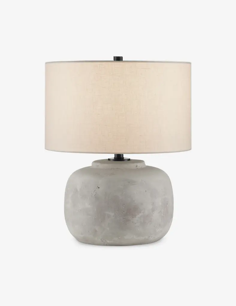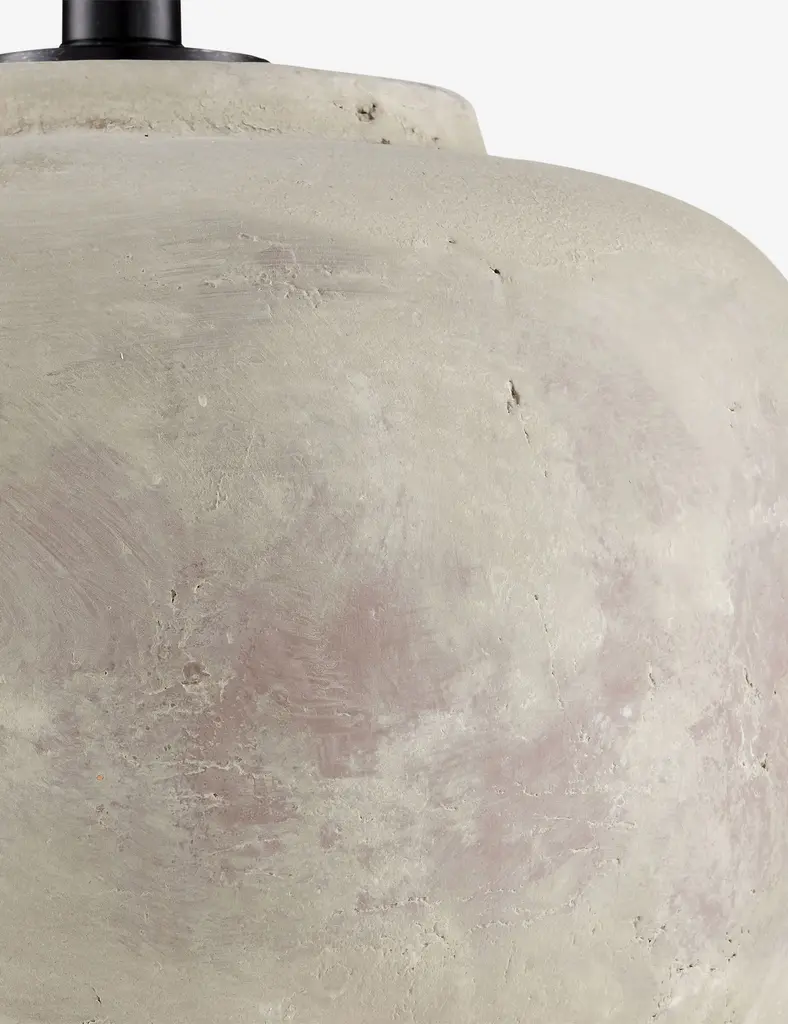 The Seneca lamp brings a timeless texture to any tabletop setting. A distressed finish creates a rich patina on the concrete body setting off its vessel shape with a beautifully seasoned tone. Topped with a linen shade, this lamp offers a touch of drama for transitional design.