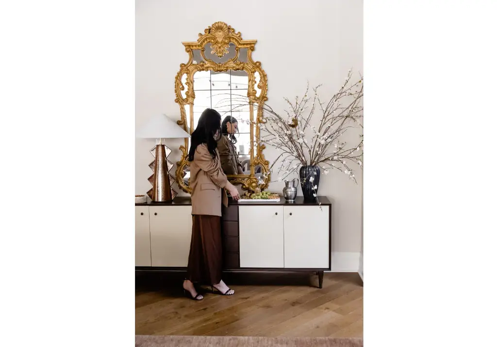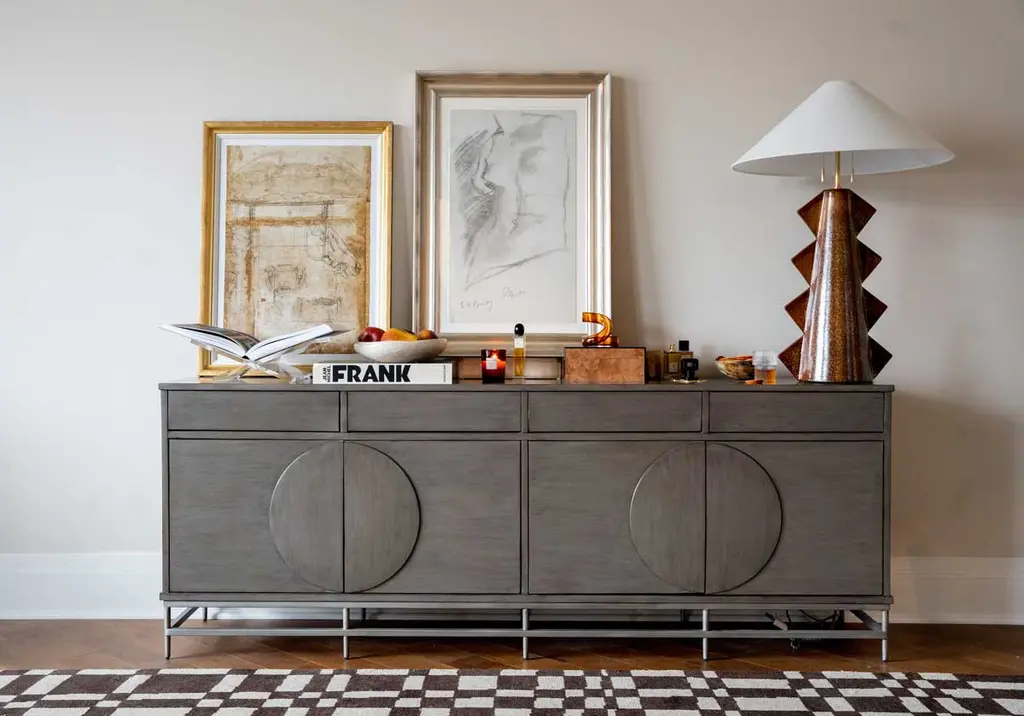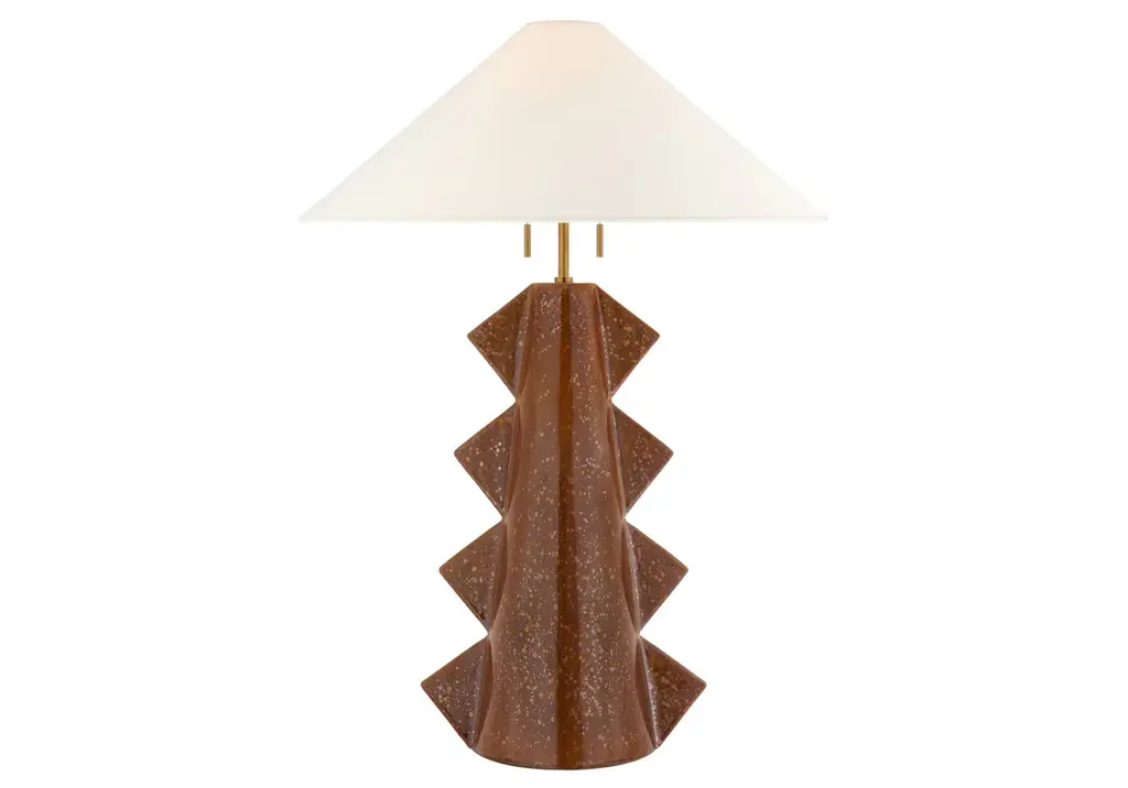 The Senso is a grand addition with its tall stature and angular form. Its conical base is adorned with triangular accents complemented by a dramatically tapered shade. Its speckled finish adds visual texture, elevating its tasteful design. Style in any room in need of a striking, dimensional touch.