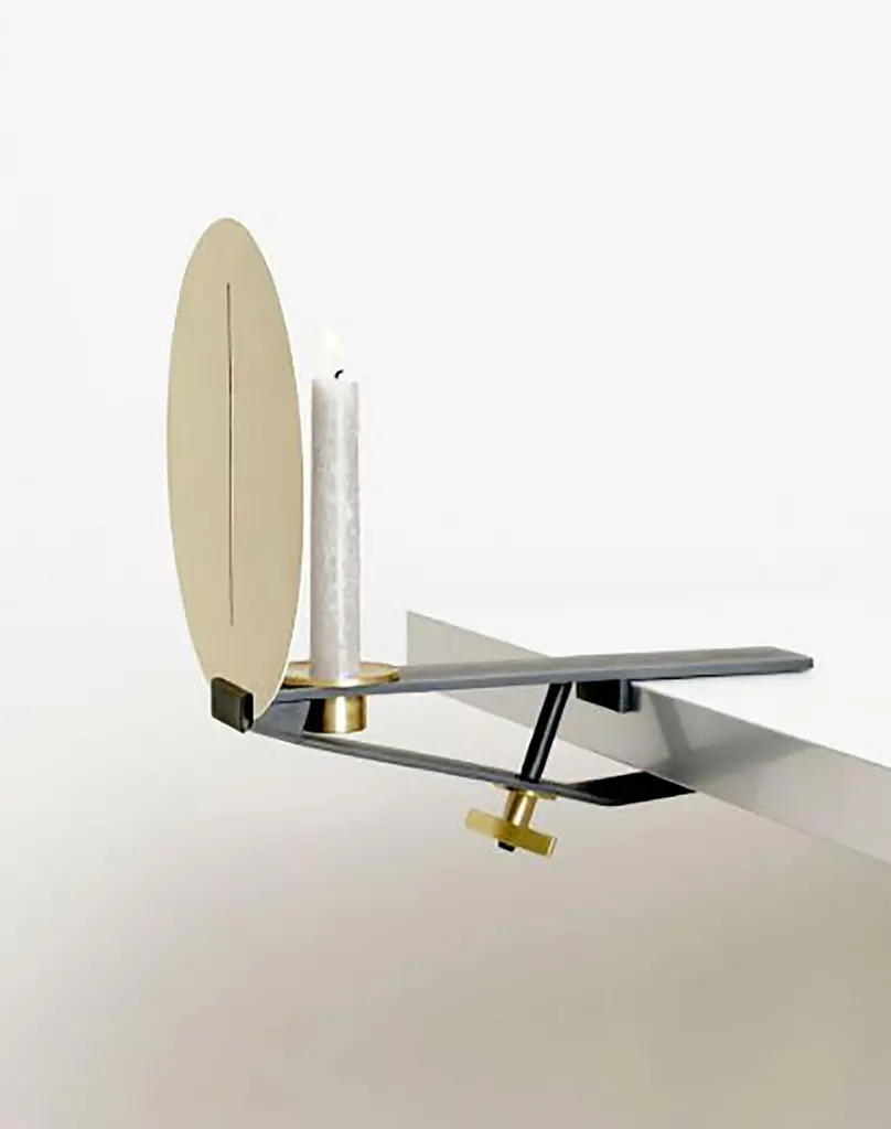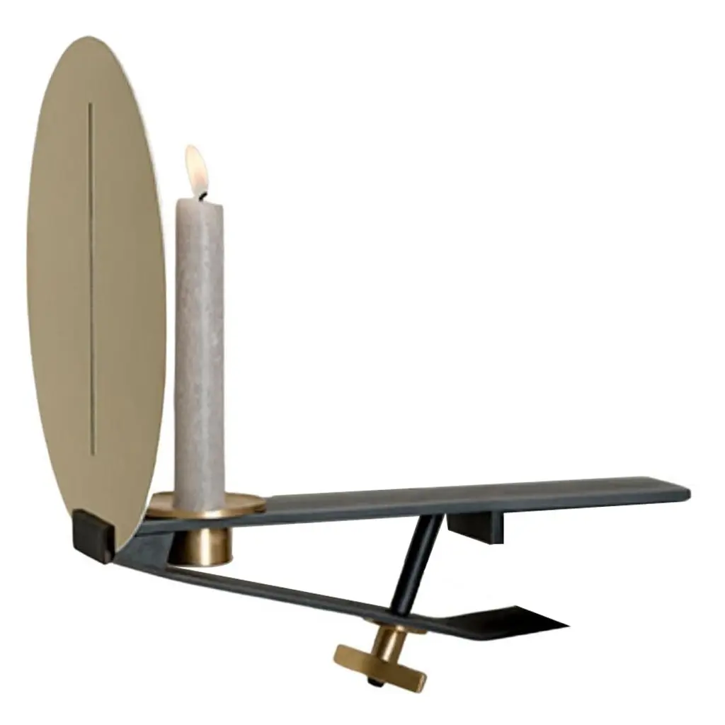 Sera Clamp designed by Aldo Parisotto & Massimo Formenton for Mingardo is a part of the furniture category. Sera clamp is a candle lamp for interiors which is mainly available in the table clamp version. The burnished iron gripper carries the candle, the demountable lampshade has one white side and one in polished brass or copper, for diffusion.