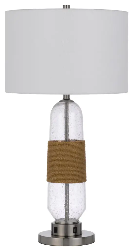 The Starfish table lamp brings coastal style and attractive accents to offices, dining rooms and foyers. Made of polyresin and ceramic, the lamp features a beautiful white finish and a charming starfish pendant that attaches to a small rope tie. The soft shade consists of rayon and polyester, neatly accenting the frame.Features:CoastalStarfish With A Rope TieIncludes a 3-way switch located at the neck of the lampShade Shape: Tapered DrumRequires 1 x 100 watt Incandescent bulb(s) ( not included)Due to lighting and monitor differences, actual colors and finishes may vary slightly from what appears online.