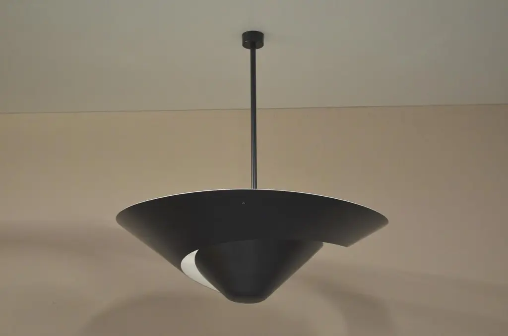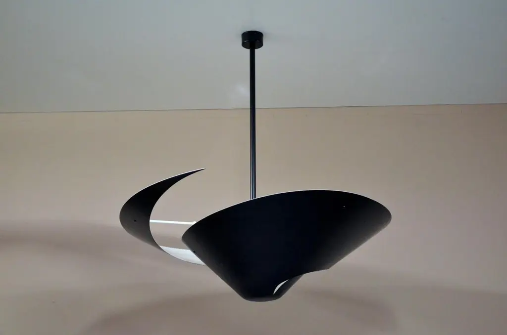 A snail shell provides the inspiration for this lamp with its swirling cut out in the circular shade. Light projects downward through the opening while the shade causes light to reflect from the ceiling.Custom drop lengths upon approval. Available in black or white.COLOR OPTIONAvailable in Black or WhiteFEATURESShade does not rotateCUSTOMIZATIONDimension of pendant required when placing an order..Pendant = from the ceiling to the tip of the shade.SWITCH OPTIONSThe Large Snail Ceiling Lamp is hardwired. The light bulb is controled from the wall switch.Best fit dimmable LED bulb providedWHAT SETS US APART? - Technical expertise - Full line of products - Availability - Customization - 5 year guarantee - Secured shipment - Small Repairs - After sale service - Experience (we introduced these lamps to the US, 22 years ago).WHAT TO LOOK OUT FOR:International shipping is expensive, lengthy and somewhat risky, potentially a stressful experience - Expensive: Most Mouille lamps are shipped in very large boxes. Shipping costs are calculated based on the volume of the box, Add this to Customs duties, insurance and US entry fee, and the final price will be approximately 25% more than your final net price. - Lengthy: Your lamp should be shipped by plane which takes about 8 to 9 hours flying from Europe to New York. Transportation is still deeply affected by the pandemic’s disruptions. - Damages: Individual boxes traveling next to heavier bundled goods typical of int’l shipping are more prone to damages. HOW WE DO IT:No need to go through all this, we’ve done this part. The lamps are sold from NY, ready to ship to you for your peace of mind. We thoroughly inspect them with our 44 check points before shipping, which gives us the confidence to offer a 5-year guarantee to our clients.
