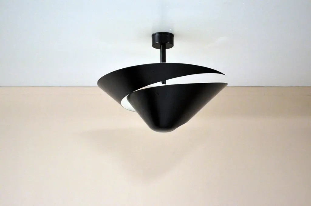 A snail shell inspires this lamp with its swirling cut-out in the circular shade. Light projects downward through the opening while the shade causes light to reflect from the ceiling.Custom drop lengths upon approval. Available in black or white.Color optionAvailable in Black or WhiteFeaturesThe shade does not rotateCustomizationDimension of pendant required when placing an order..Pendant = from the ceiling to the tip of the shade.Switch optionThe Small Snail Ceiling Lamp is hardwired. The wall switch controls the light bulb.Best fit dimmable LED bulb providedWHAT SETS US APART? - Technical expertise - Full line of products - Availability - Customization - 5-year guarantee - Secured shipment - Small Repairs - After-sale service - Experience (we introduced these lamps to the US 23 years ago).WHAT TO LOOK OUT FOR:- No expensive international shipping, - No Customs fee- No deadlineUpon arrival, all lamps were thoroughly inspected with our 44 check points, which gives us the confidence to offer a 5-year guarantee to our clients.