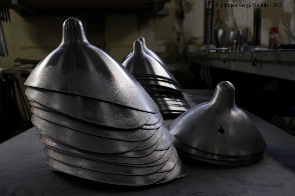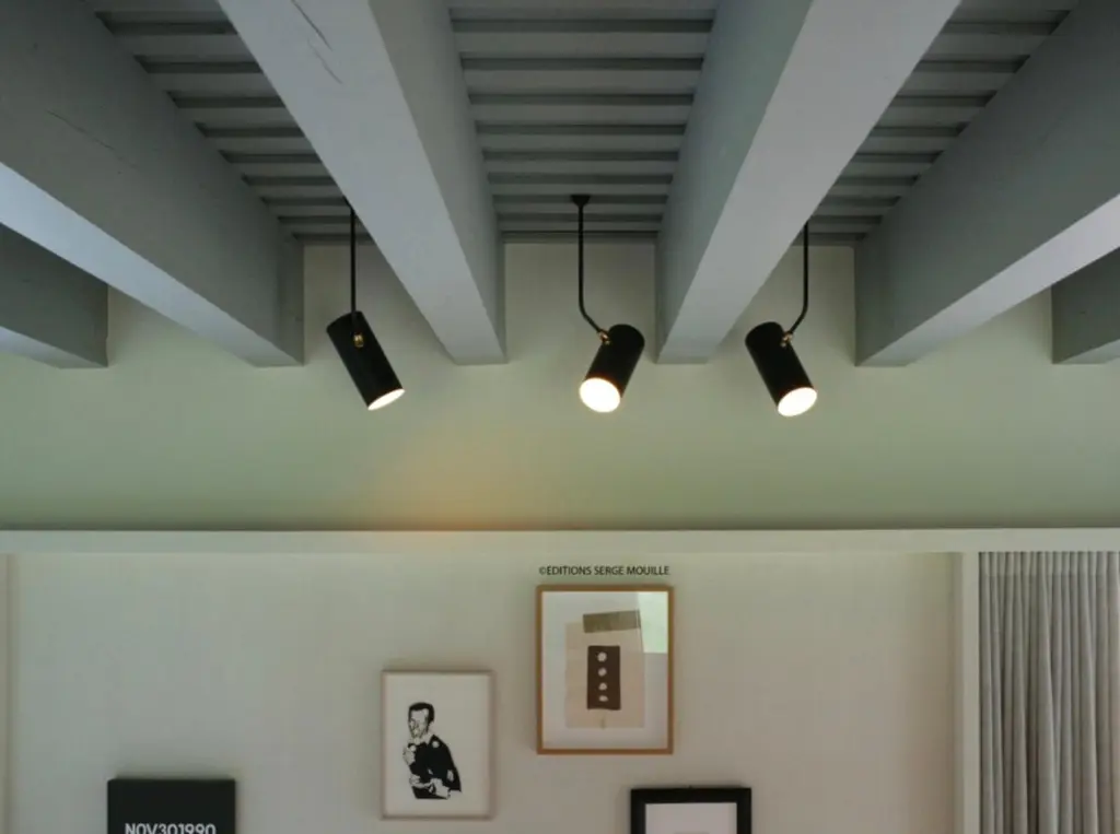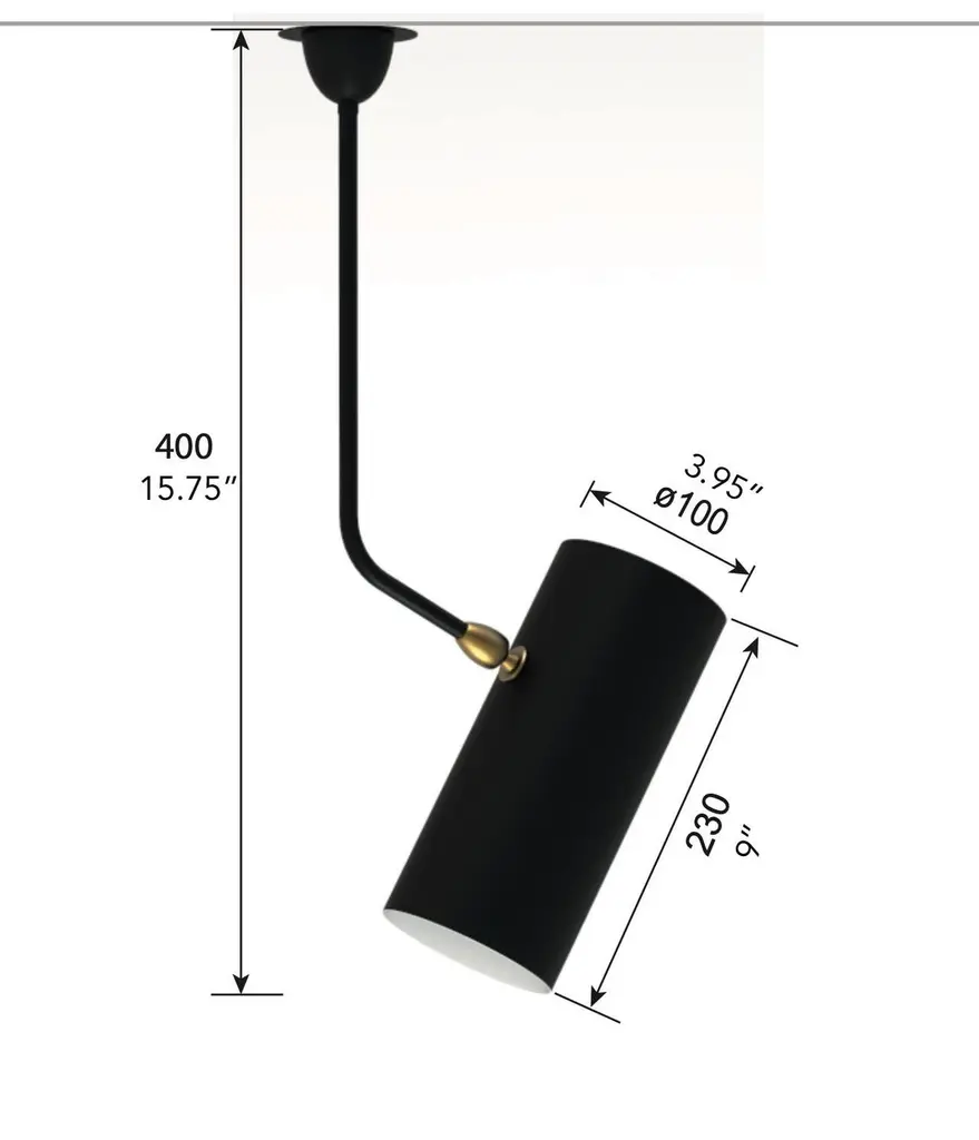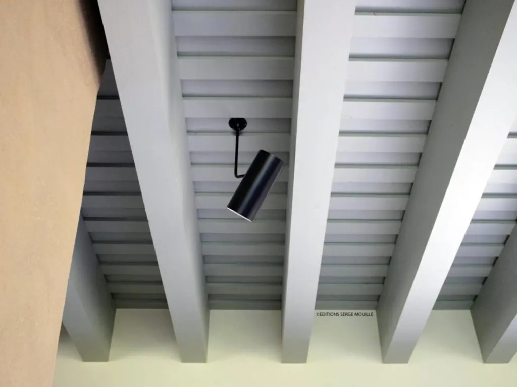 Serge Mouille 'Tuyau' ceiling lamp in black.Originally designed in 1955, this iconic ceiling lamp is still made by Edition Serge Mouille in France using many of the same small-scale manufacturing techniques and scrupulous attention to detail, materials and craftsmanship. Executed in painted black metal with a white interior diffuser. The adjustable shade allows for maximum flexibility of light in almost any direction. Includes certificate of authenticity and engraved serial number.Price is per item. Available in unlimited quantities. Also available in an all-white version. Accommodates 1x 60W equivalent candelabra LED bulb (lower with incandescent). Not UL listed.Current out of stock lead time 26 weeks or more. Inventory availability subject to change at any time. For time-sensitive orders, kindly inquire prior to purchasing.Made to order. All sales are final.