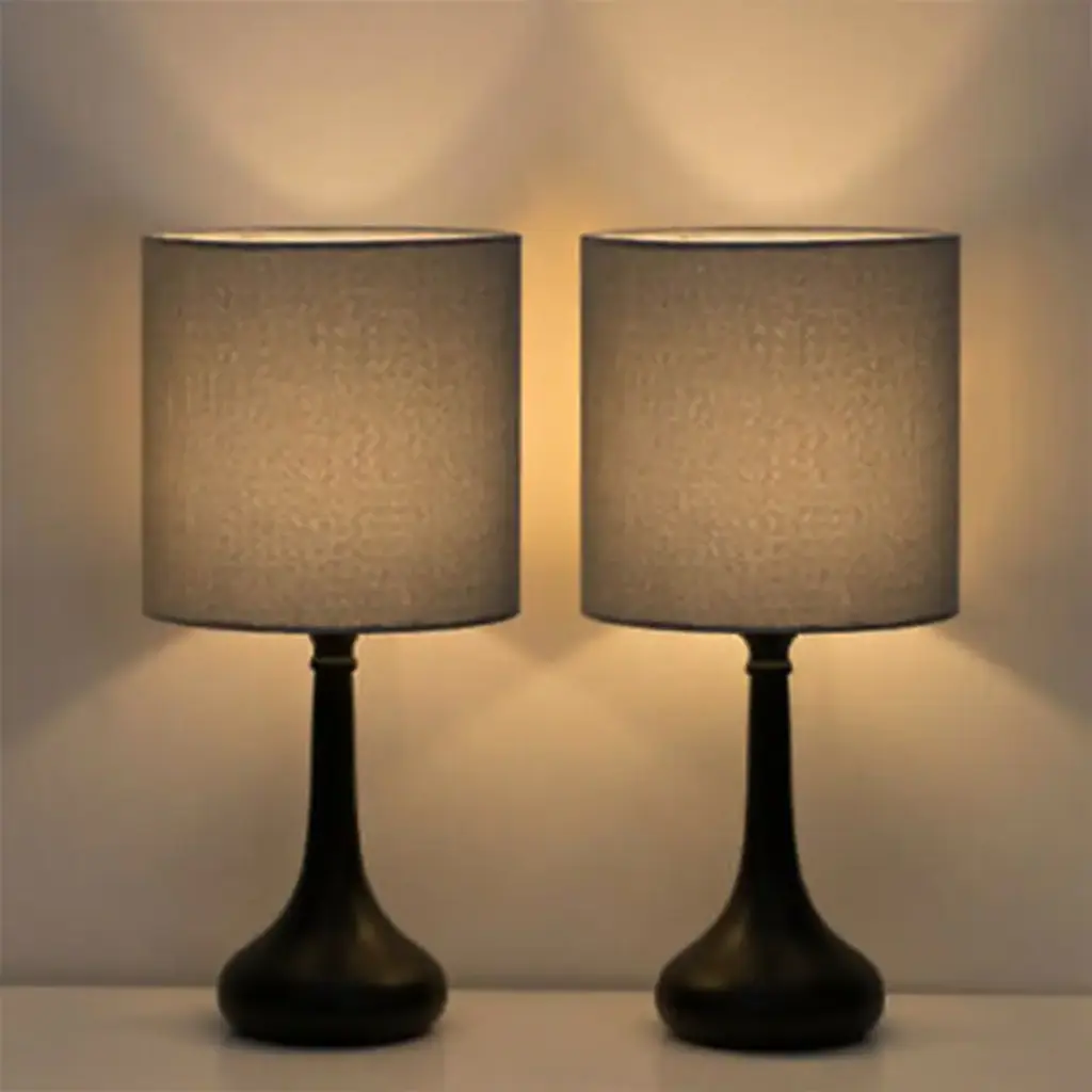 Product Description Please be sure the size of Lamp before purchase! This is like small table Lamp Lamp Size: 16.2 x 7.1 x 7.1 Inches ✓ There is a button switch on power cord, Non-touch switch! ➤Compact Bedside Table Lamps:16.2 x 7.1 x 4.3In, it is great for any bedside table, office desk, cafe, dresser. It's perfect in living room, family room, boys room, girls room, office, den, college dorm, bar, hotel, etc. ❥ (Please be clear about the size when you browse) ➤Classic & Modern: Constructed of high-quality metal body and gray fabric shade that provide a modern stylish feeling. These small lamps are designed for modern and elegant looks. ➤Also Decor for Home: In modern and elegant looks, they can add a touch of elegance to any room in your home or office. ➤Safe to Use: The cord, socket and plug of HAITRAL set of 2 nightstand lamps are UL listed. ➤Easy to Use: An ON/OFF button switch on the power cord is easy to turn on-off. Light weight lamps, is easy to move to any place where you have lighting needs and easy to assemble. ❥ (Not touch switch and Non-dimmable) Specification: - Type:Vintage Table Lamps - Color: Gray - Input Voltage: 110V - Certification: UL Listed - Lamp Size: 16.2 x 7.1 x 7.1 Inches - Light Bulb: E26, Max 60 Watts - Power Cord Length: 67 Inches - Switch Type: Button Switch on Cable - Material: Metal Body, Fabric Lamp Shade - Bulb Base: E26(Bulb not included), Max 60 Watts