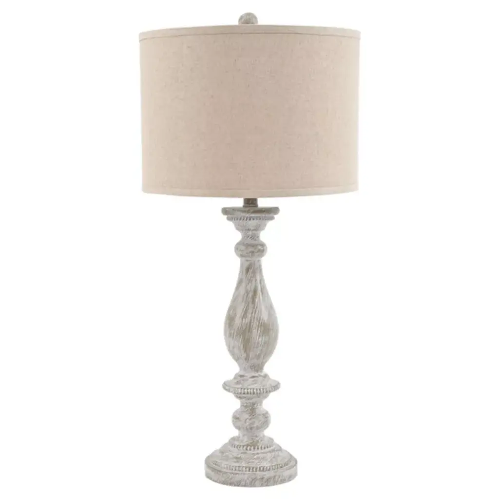 With its whitewash finish, this table lamp is full of character and style. Its candlestick design and drum shade will add a dose of casual chicness to your living space. It is the perfect way to spice up your room, all while providing warm ambient lighting to set the mood. Brighter, well-lit spaces always tend to look larger, smarter and so much more visually appealing. With our wide variety of table lamp shapes, sizes and styles, we’d say your future is definitely looking bright. And we go the extra mile to package, protect and deliver your purchase in a timely manner. Trust us to bring your space to life with furniture and decor that show off your style and personality.