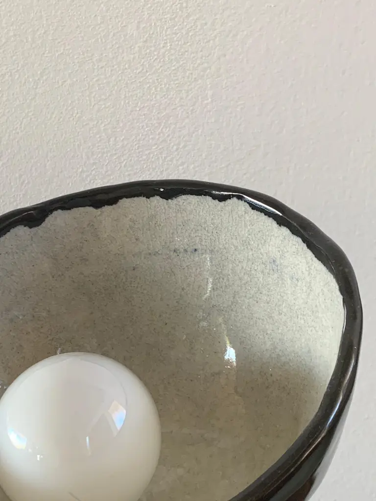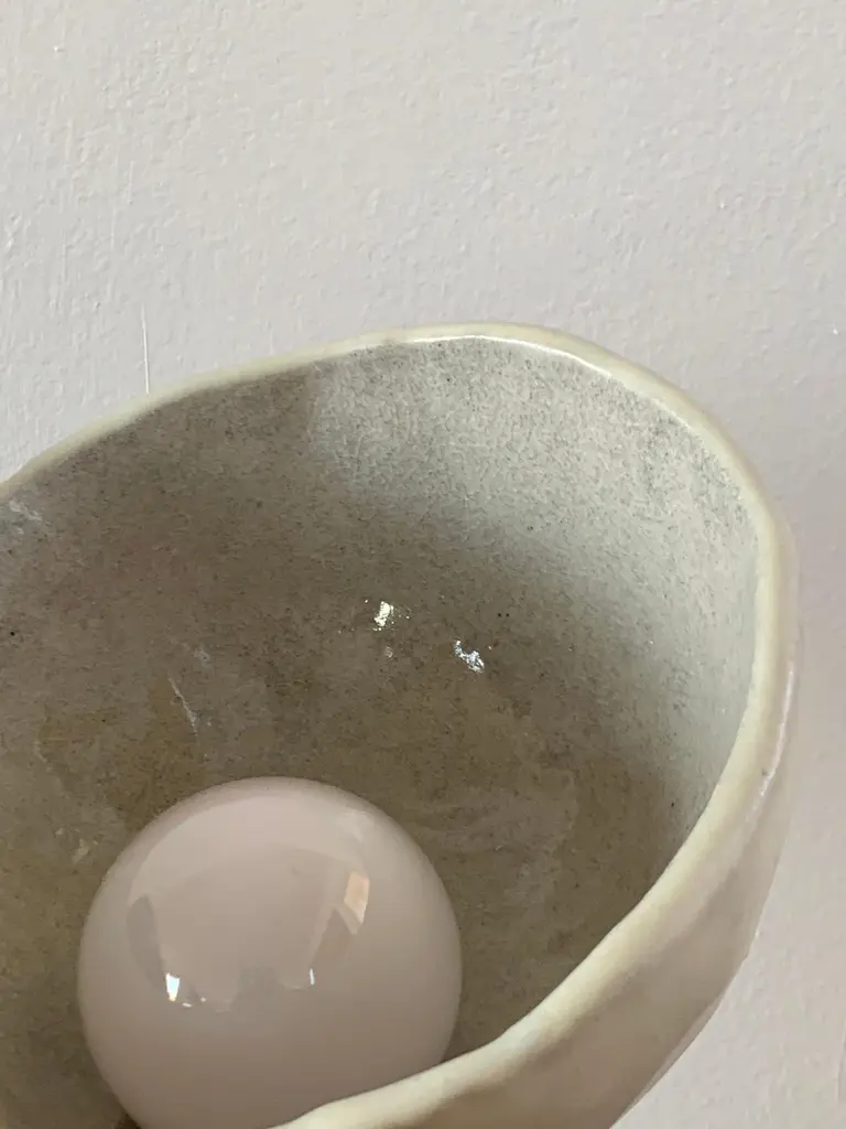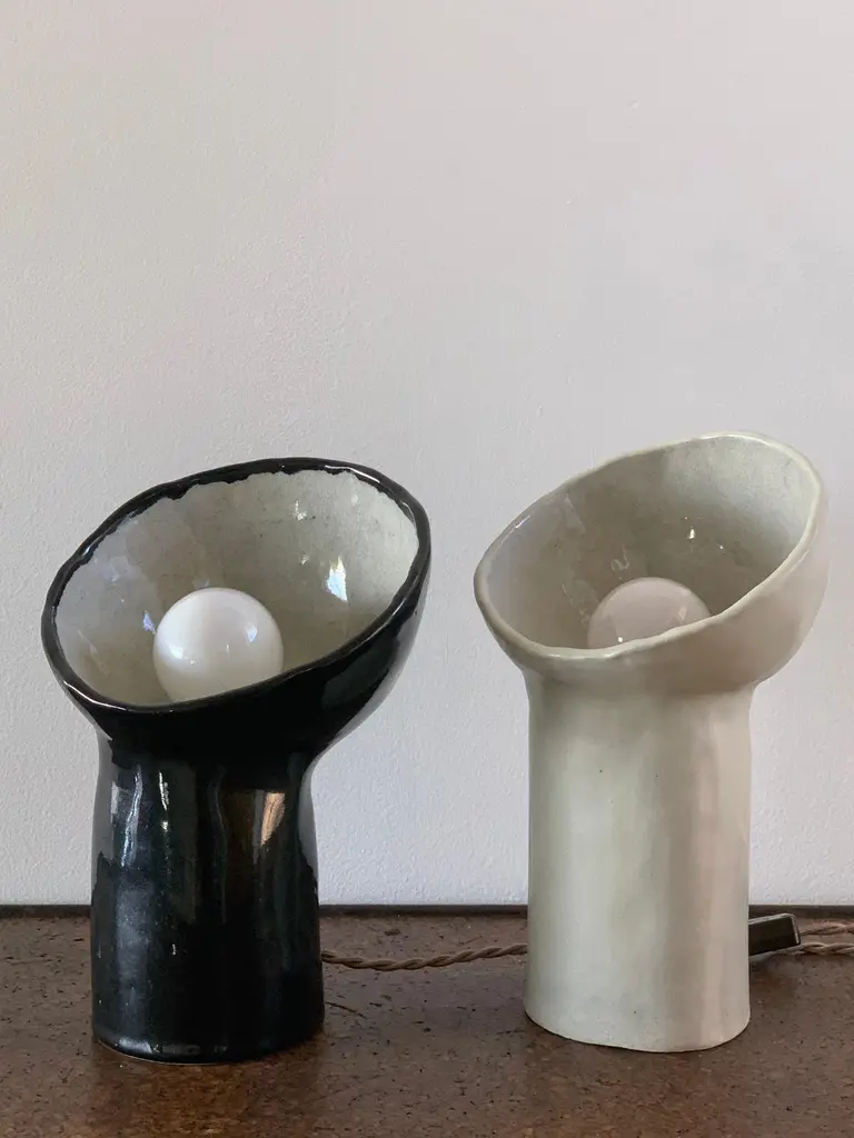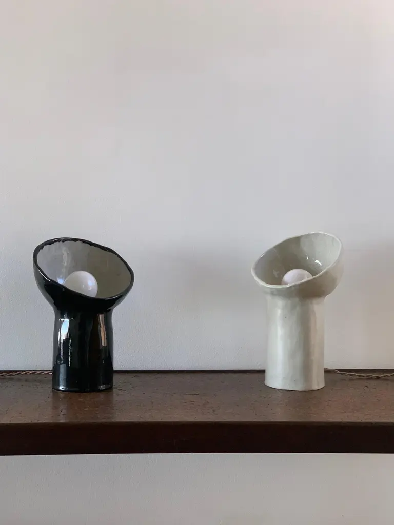 Set of 2 Black and White Cyclope Lamps.Great for indirect lighting.Black: 7 in. diameter x 10 in. tallWhite: 10 in. diameter x 11 in. tallWired with 3-way switch for 2 intensities of light and twist cord.