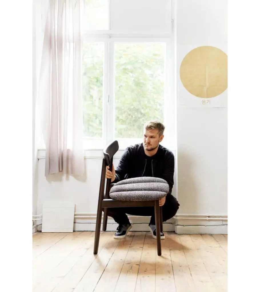 Black ash klee chair 2 by Sebastian HerknerMaterials: Natural ash. Fabric. Technique: Black stained. Seat upholstered in fabric. Dimensions: D 45 x W 42 x H 78 cm Available in natural oak and upholstered in different fabrics. COEDITION is a French publisher of high-end contemporary furniture created in 2014. Thanks to the diversity of the languages ??of its international designer's partners, COEDITION is an avant-garde brand, with the concern and the desire for sustainability. They are selected with great care. Among other things, solid woods and veneers are, depending on their origins and terms of supply. Our manufacture is only made in Italy, with the best craftsmen in the profession, committed to quality and the environment.Today 13 great designers are creating exclusive collections for COEDITION: Patricia Urquiola, Patrick Jouin, Luca Nichetto, Rodolfo Dordoni, Shin Azumi ”, Michael Anastassiades, Olivier Gagnère, Dominique Perrault and Gaelle Lauriot Prévost, Marco Zanuso Jr., Arnaud and Aki Cooren, and finally Alain Moatti.Our catalog offers furniture for the home, public places, reception areas, restaurants, hotels. Our raw materials are carefully selected, solid woods and veneers, according to their origins.Sebastian Herkner (born 1981) studied product design at HfG Offenbach University of Art and Design. During his studies he began to focus on the design of objects and furniture, honing his keen eye for materials, colors, and textures. For a short time, he then worked for Stella McCartney in London. In 2006, Sebastian Herkner founded his own studio. He has since designed furniture, lamps, and smaller items for many manufacturers. Maison & Objet elected him “designer of the year” in 2019.