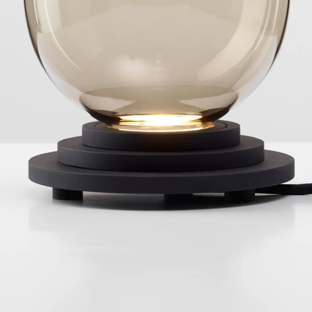 Set Of 2 Black Stratos Capsule Table Light by Dechem StudioDimensions: D 15 x H 22 cmMaterials: Aluminum, Glass.Also Available: Different colours available,Different shapes of capsules and spheres contrast with anodized alloy fixtures, creating a surprising architectural element. The luminaires are available in various colours including crystal clear, smoke grey, alabaster white, pink, green and orange.Glass, just like people or trees, is perfectly capable of being shaped and formed. One can imprint just about anything into it, give it a form, capture a passing moment, breath a new life into it. Later it stiffens and freezes like a petrified fossil, like magma, like a witness. No one can move it. It is solid as a rock and if you urge it, it rather shatters into pieces than to surrender.We are DECHEM.We are Michaela and Jakub, designers and storytellers in Bohemian glass. Our work is based on contemporary design combined with a mastery of production and a healthy respect for old Central European craft and traditions.We design, produce and sell our collections of lights and decorative glass products. We produce unique light fixtures made from a combination of mouth-blown glass and handcrafted brass. Our glamorous chandeliers light up any space with a playful yet elegant appearance.A significant component of our work is blowing glass into a colour gradient. The wide range of fresh gradient colours is a distinctive feature of the Bandaska vase from our collection. It draws inspiration from traditional milk containers, well-known in Czech village households, and their elegant lines are now coming into modern homes in the form of our glass vases and lights.In addition to our normal production, we love to devise bespoke luminous objects for interiors. They arise from experimenting with unconventional materials and unusual combinations.Along with our own work, we like to be part of special collaborations and exhibitions. We have collaborated with renowned galleries and institutions, and curated and exhibited projects in Milano, London, Frankfurt, Istanbul and several other cities around the world.All of our creations are manufactured with care in Czech workshops using unique methods, including hand-blowing, snapping, cutting, grinding, firing, engraving and glass painting.We founded DECHEM studio in Prague in 2012 as partners in both work and life after years of studying glass craft and design, and we have grown it into a renowned and award-winning design studio.
