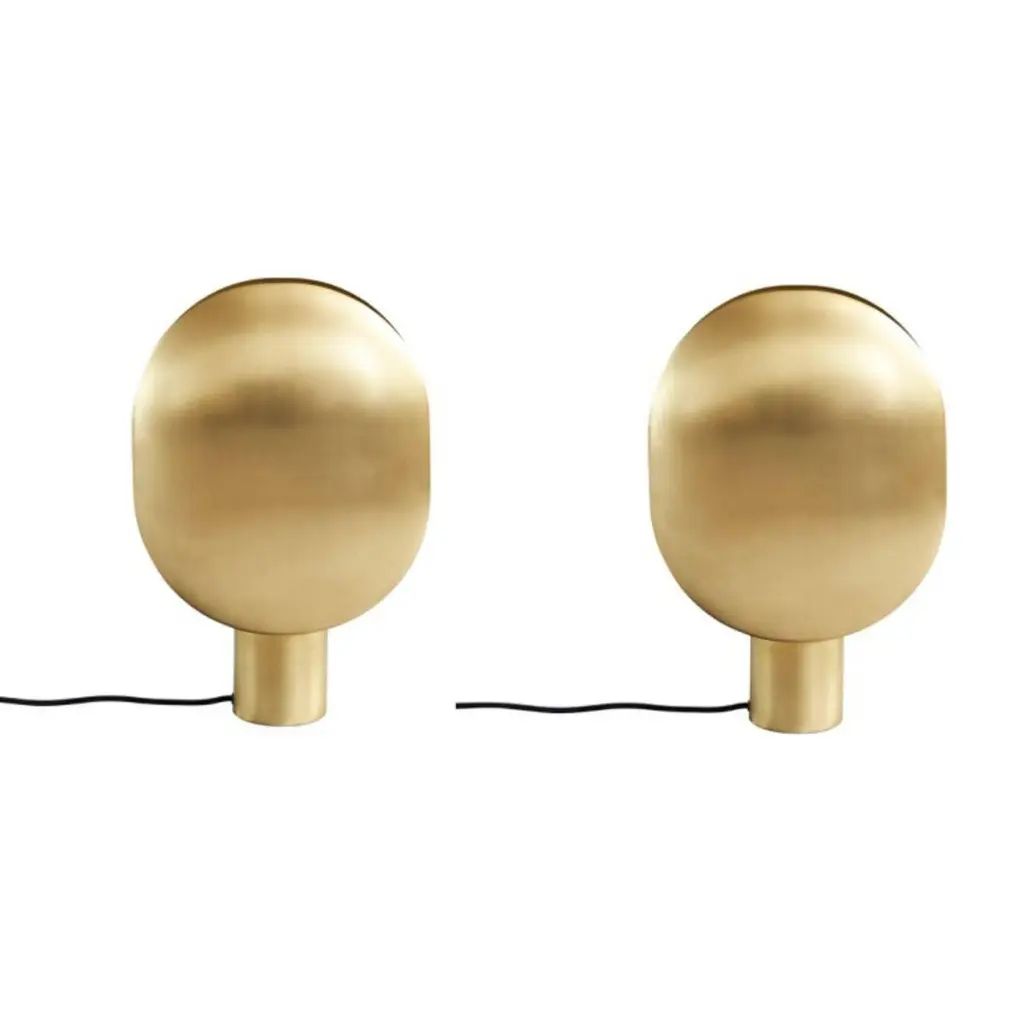 Set of 2 brass clam table lamps by 101 CopenhagenDesigned by Kristian Sofus Hansen & Tommy HyldahlDimensions: L 30 x W 15 x H 43,5 cmCable length: 200 cmThis product is not wired for USAMaterials: metal: plated metal / brassCable: Fabric covered cable / blackCharacterized by its two opposing lampshade, Clam celebrates the contrasts between direct and indirect lighting. Inspired by the shape of a clam, the gently curved metal screens hide the lightsource, while smoothly reflecting the light to both sides. Clam wall lamp is the newest addition to the Clam collection, featuring a single lampshade turned towards the wall itself. Creating an almost eclipse like effect, the Clam wall lamp creates a cosy and inviting atmosphere. 101 Copenhagen is a Danish design brand founded in 2017. With a vision to honor exquisite quality and craftsmanship, the collection encompasses furniture, lighting and accessories in a timeless, yet modern design. With a true passion for materials and refined textures, organic shapes and colours, 101 Copenhagen presents the epitome of classics and must-have novelties for Scandinavian and international interior connoisseurs alike.