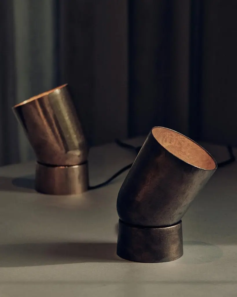 Set of 2 Bronze Spot Table Lamps by Henry WilsonDimenions: D 13 x H 21 cmMaterials: BronzeSpot light is a direct, sculptural light cast in two parts from solid gunmetal bronze. Each casting is manufactured in small batches meaning slight variations will occur from piece to piece. Production marks may include slight pour ripples or surface pitting. Measures: D130 x 210mmSpot light polished aluminum 13 cm W x 13 cm D x 21 cm HSpot light polished bronze 13 cm W x 13 cm D x 21 cm HSpot light darkened bronze 13 cm W x 13 cm D x 21 cm H Henry Wilson's work combines a rational, democratic utility with an element of sculptural expression. There is a clear form and function in our products, but it’s important they also have feeling. We are interested in the awkward beauty that comes from something made by hand. We like to explore how imperfection can be introduced into an Industrial process, to make something at scale that retains a sense of individual charm.Permanent collections and exhibitions- Museum of Applied Arts and Sciences, Sydney, Australia- Art Gallery of Western Australia, Perth, Australia- 'Sempering' XXI Triennale, MUDEC, 2016, Milan, Italy.All our lamps can be wired according to each country. If sold to the USA it will be wired for the USA for instance.