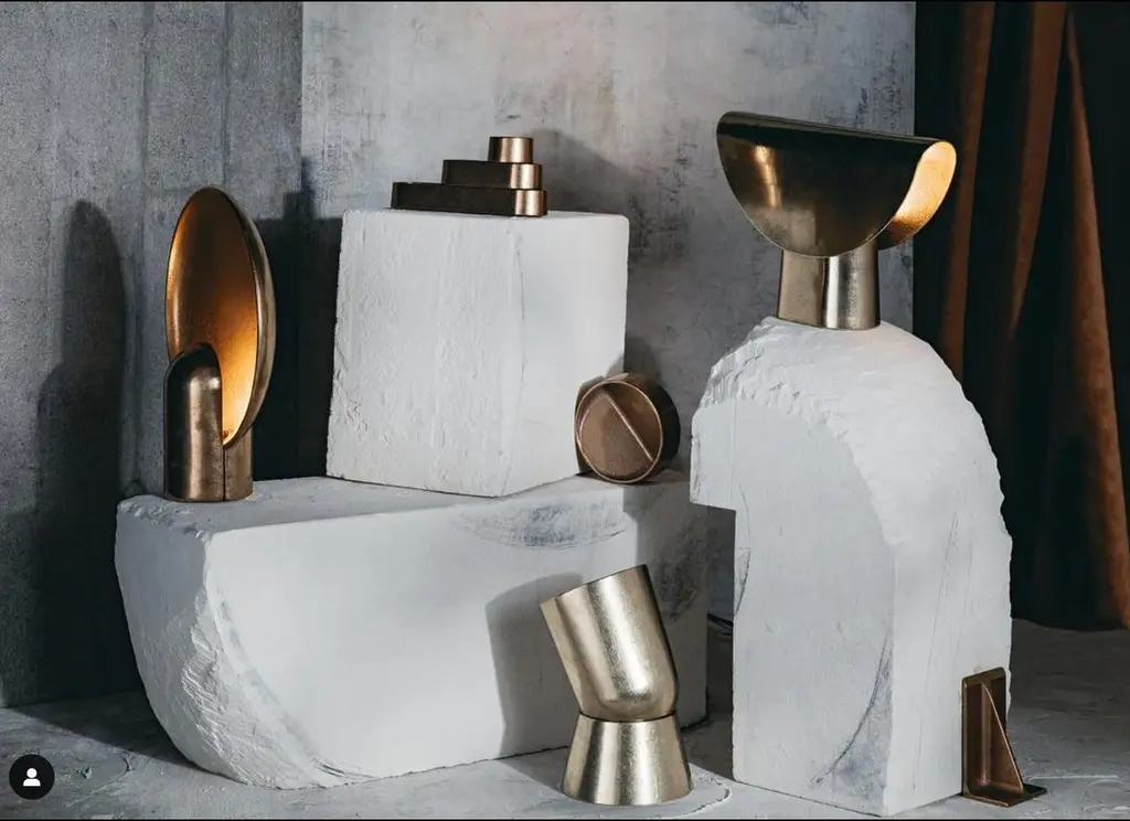 Set Of 2 Contemporary Golden Bronze Spot Table Lamps By Henry Wilson