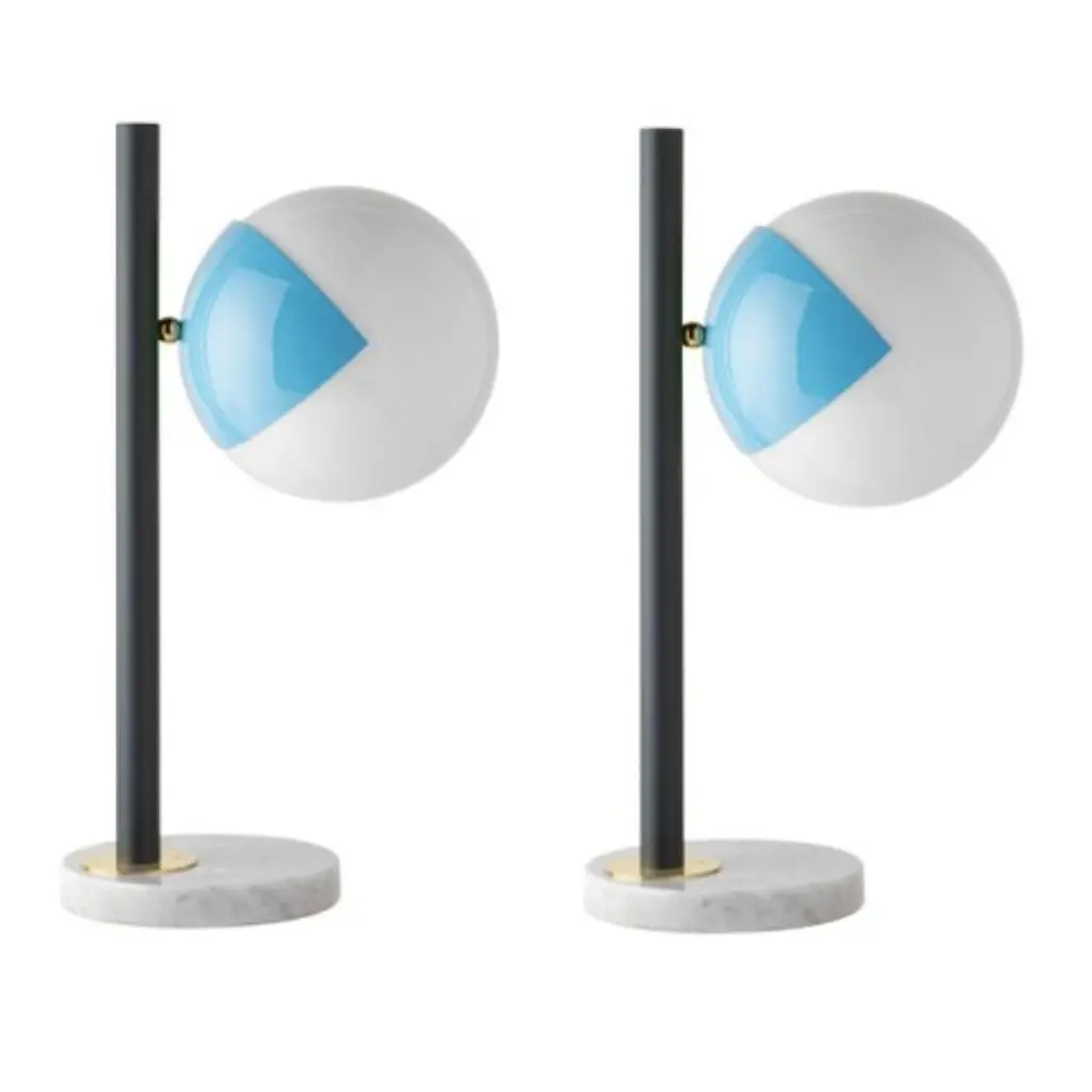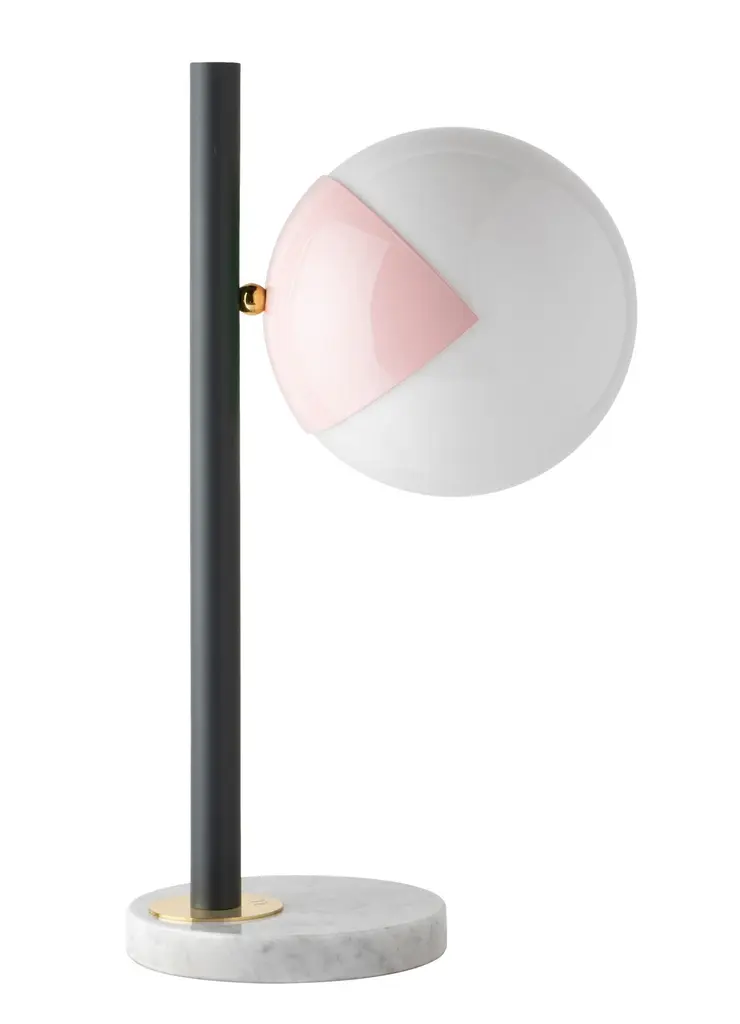 Dimmable table lamp pop-up black by Magic Circus EditionsDimensions: Ø 22 x 30 x 53 cm Materials: Carrara marble base, smooth brass tube, glossy mouth blown glassAll our lamps can be wired according to each country. If sold to the USA it will be wired for the USA for instance.Rethinking, reimagining, redesigning familiar objects that we look at every day without ever really seeing them and using light to tell stories, this how Marie-Lise Féry sees her work. Offering a new take on our urban heritage, changing our perspective through her work on scale and usage. Since 2015, Magic Circus Éditions has been setting the world of lighting ablaze, creating airy, playful and magical designs that merge retro with sleek and contemporary. A free-spirited antiquarian, founder Marie-Lise Féry draws inspiration from the world of cabarets and the magic of the circus to give shape to imaginative, fun and playful collections. The air of magic she breathes into her work reveals a wealth of interpretations and widens possibilities for creative interiors. The combination of traditional know-how — outstanding craftsmanship — and her imaginative take on historical, everyday objects lends an unexpected and charming quality to her creations.Féry’s lights are designed just like magic lanterns — precursor to modern-day cinema —, inspiring wonder through oversized, seemingly weightless compositions and understated references. Each collection has its own inspiration: the first models of street lighting for Collection 01; the happy memories of funfairs, sweets and balloons for her latest collection Balloon; the Far East for Collection 02; and the colourful, carefree spirit of the 1970s for Pop-Up, released in 2019. Magic Circus Éditions draws on airy designs, dream-like inspirations, colours and fun to create a sense of enchantment.Magic Circus Éditions founder Marie-Lise Féry was born in Paris. After studyingart business, she moved to New York to start her career. Fascinated by the city’s architecture, she found an endless source of inspiration in the Big Apple’s monumental decors. Returning to France to settle down in Lyon, she opened an antiques gallery named Un Château en Espagne, and started telling her own stories through objects she gleaned on markets all around the country. A way for her to perpetuate her mother’s motto: “Objects with a soul will always belong”. Since 2015, the year she established Magic Circus Éditions, she has moved on to lighting as a new medium for telling her stories, bringing the magic of the show into home interiors. With her love for the circus, turn-of-the-century cabarets and music halls, Marie-Lise Féry’s love of unusual objects has remained strong, but now prefers to focus her attention on pieces she has imagined herself. With a fun and light-spirited approach, she creates a bold visual effect that elicits instant attraction. She collaborates with some of Europe’s greatest artisans, from Prague and Murano to Clermont-Ferrand, working for instance with a Czech company specialising in sculpting glass using a diamond-blade saw, or an auto body shop renowned for their work with lacquers. The refinement of shapes and finishes, bespoke designs and technical excellence all contribute to creating pieces that inspire surprise and wonderment. In the manner of Wes Anderson in Grand Budapest Hotel, blending together elegance, humour and unexpected details, her designs never fail to surprise. Attentive to the effect of her designs both in daylight and at night, Marie-Lise Féry takes us on a journey through space (from outside to inside) and time (from yesterday to today).