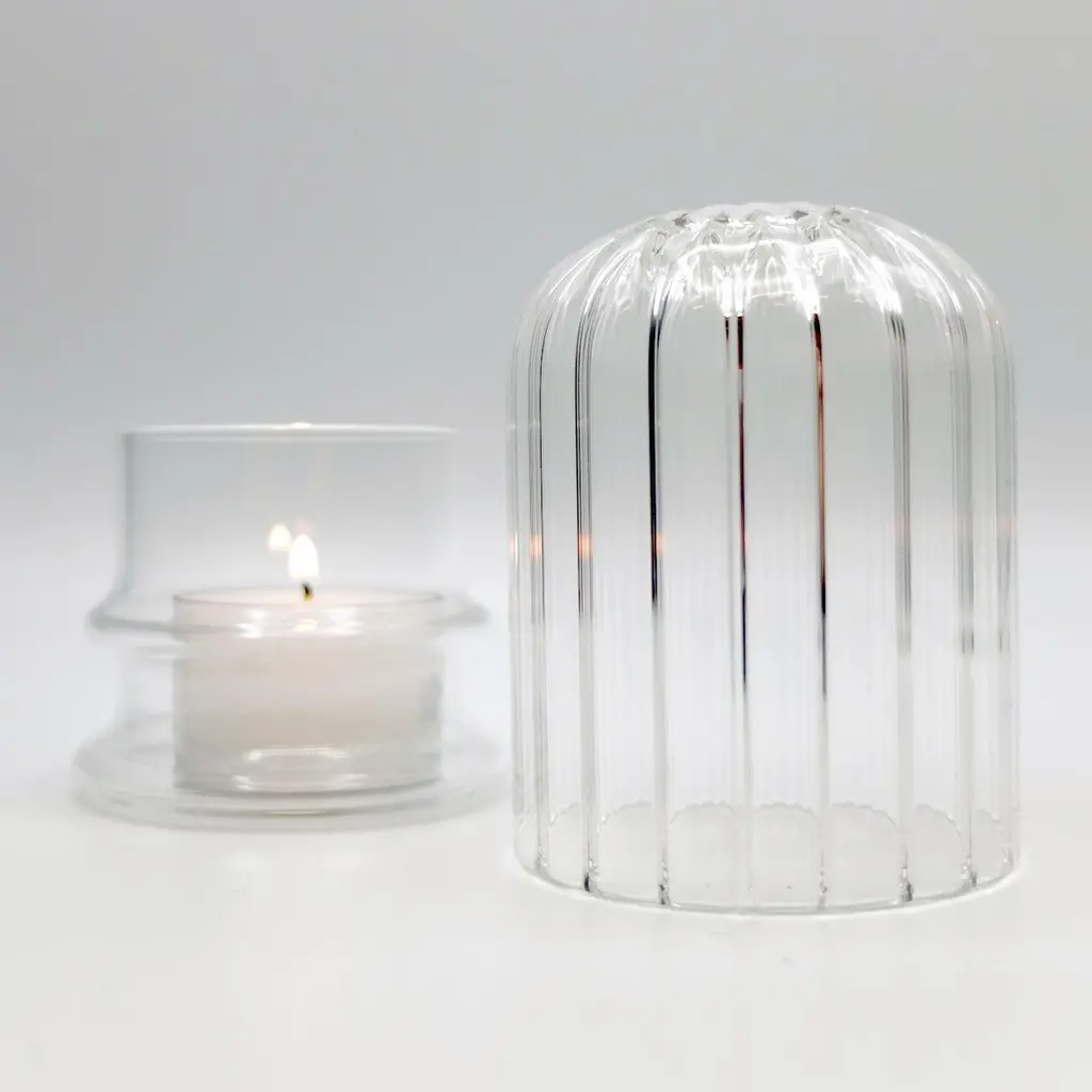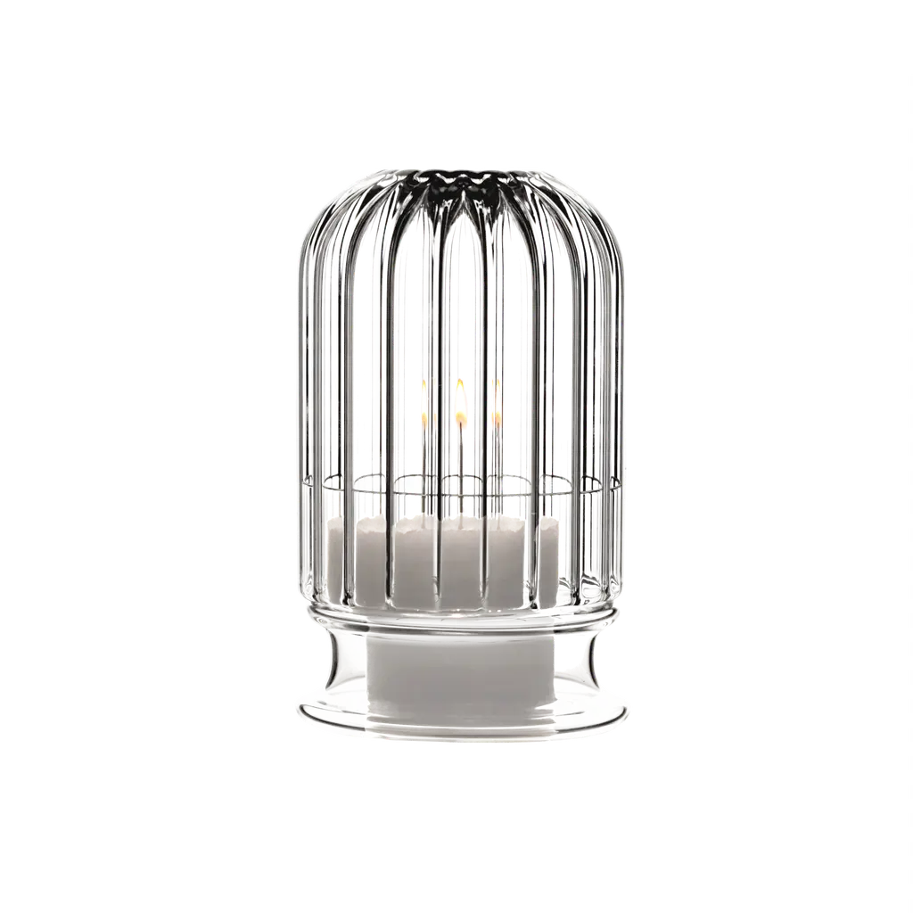 Moscardino is an elegant candle holder handcrafted in borosilicate glass by Venetian craftsmen. The structure of this decorative element appears as a dome that protects and accommodates a small candle. The faint light from the candle fire creates a romantic and relaxing atmosphere in the room. Also ideal for outdoor use.Minimal variations in shape, size and colour are to be regarded as an exclusive feature, a sign of quality and non-serial production.The set consists of 2 Moscardino candleholders.