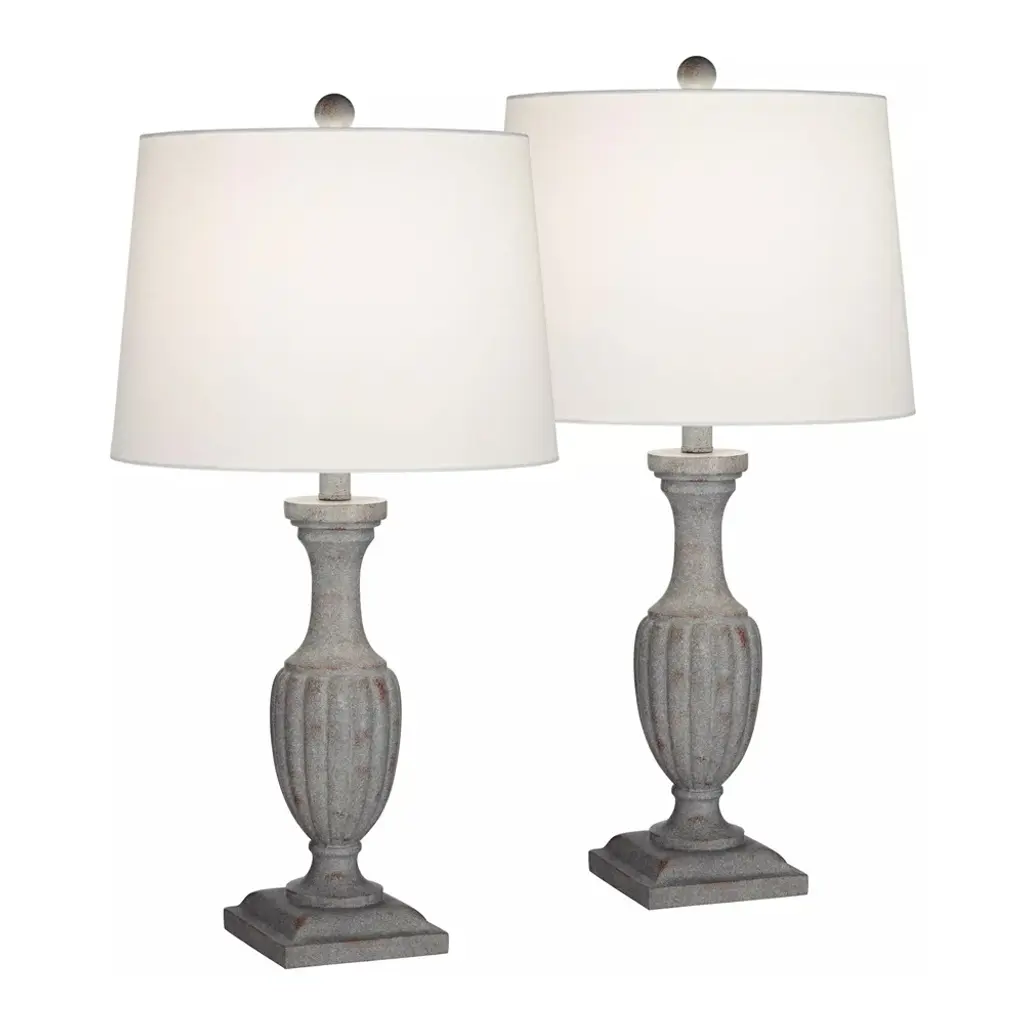Set Of 2 High Gray 26" Faux Wood Table Lamps - 14" X 26" - 14" X 26" - Grey